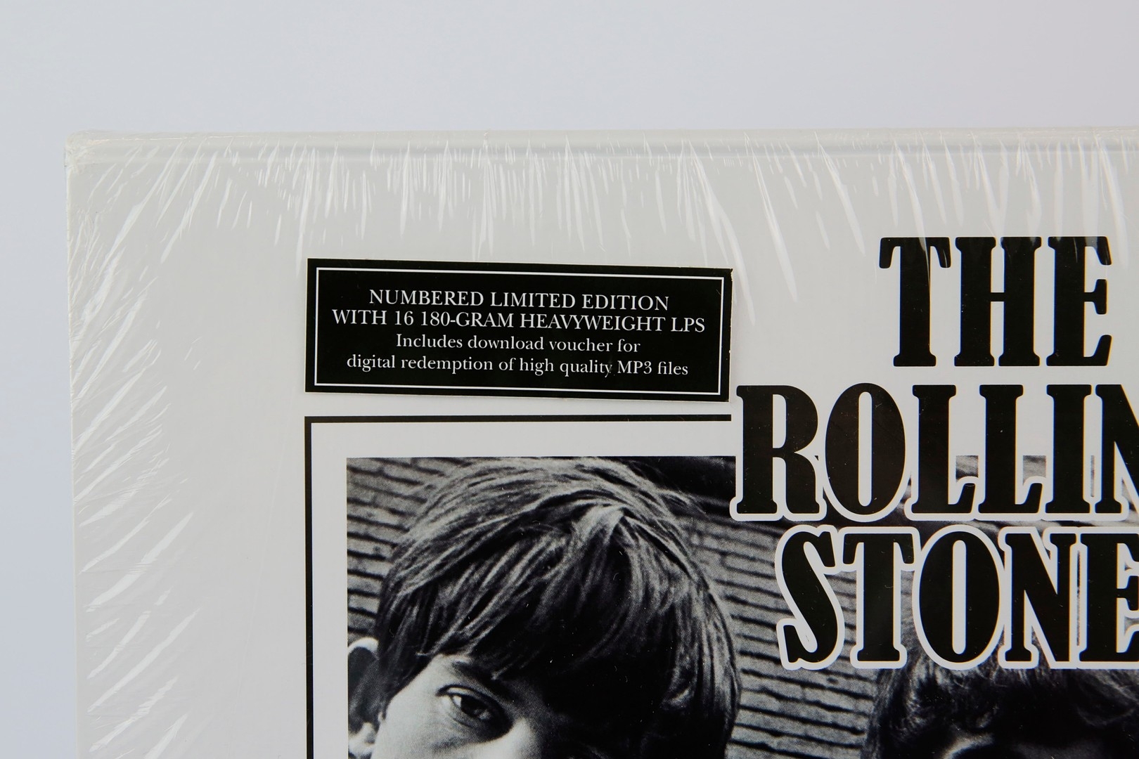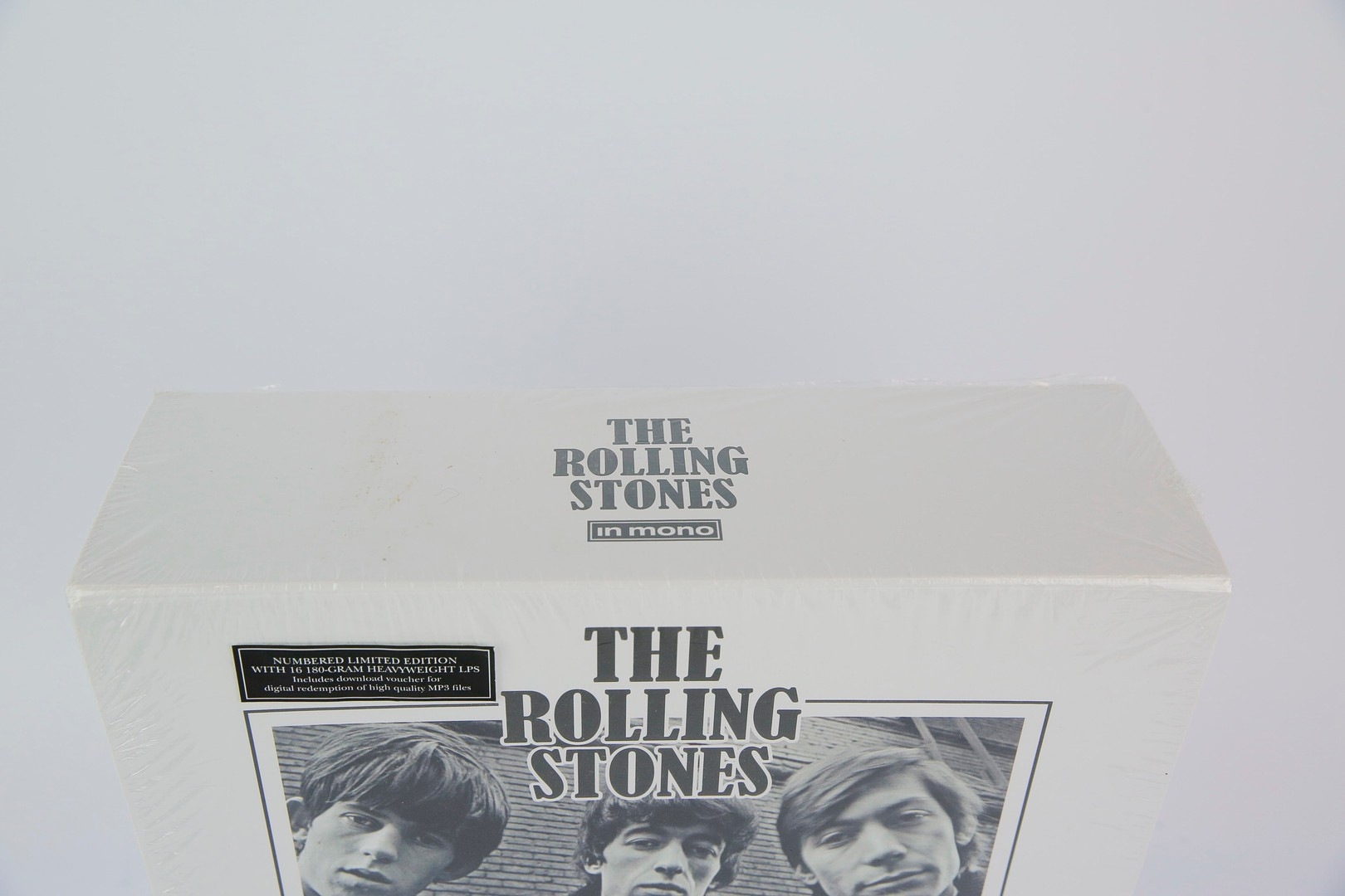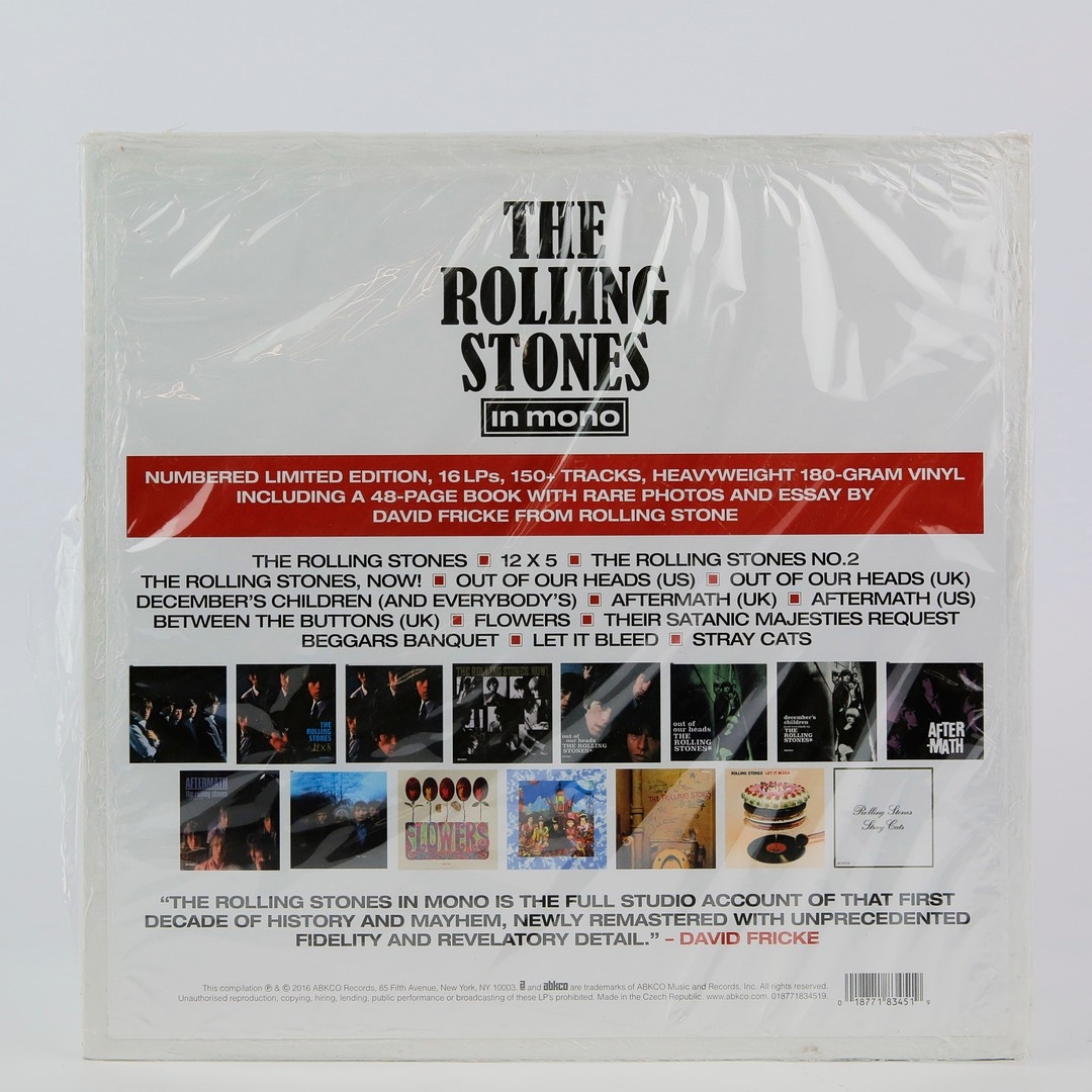 THE ROLLING STONES IN MONO BOX SET, LIMITED EDITION. The Rolling Stones in Mono box set of 16 LPs, factory sealed. Limited edition 106/10000 noted to base. Some tears to plastic wrapping and crack to base of box sleeve.