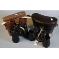 Pair of German Denhill Volksglas 10 x 50 binoculars in leather carrying case, together with a good pair of Carl Zeiss 8 x 50 binoculars in leather carrying case. (2)