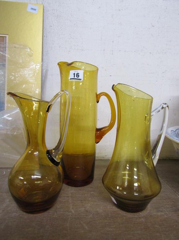 THREE WHITEFRIARS AMBER GLASS JUGS