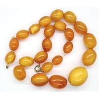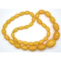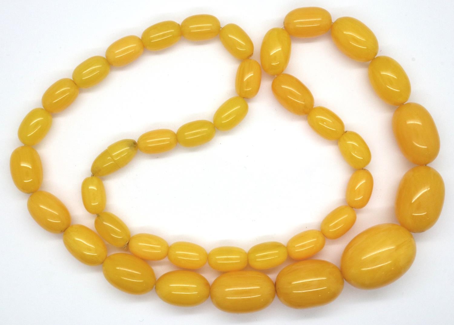 Yellow amber bead necklace, largest bead 29 mm, L: 60 cm, 64g. P&P Group 1 (£14+VAT for the first lot and £1+VAT for subsequent lots)