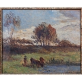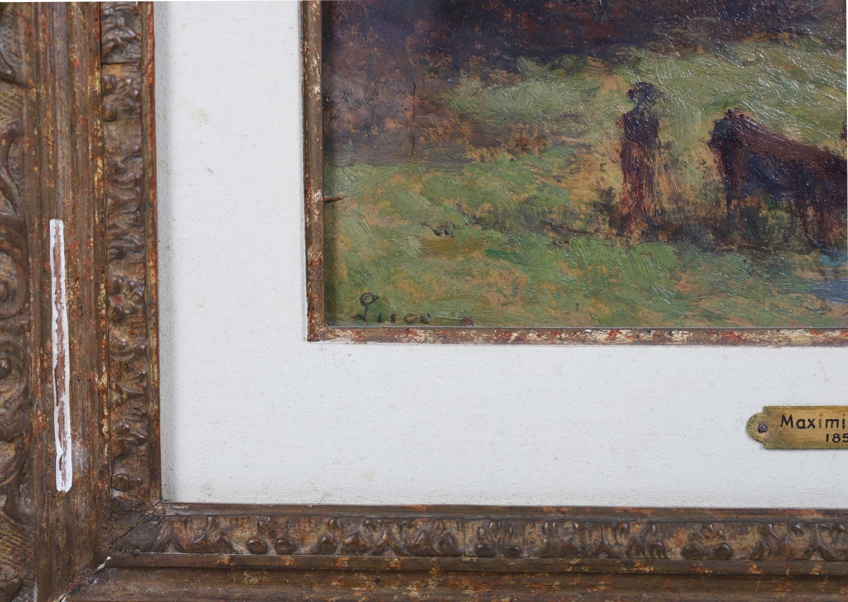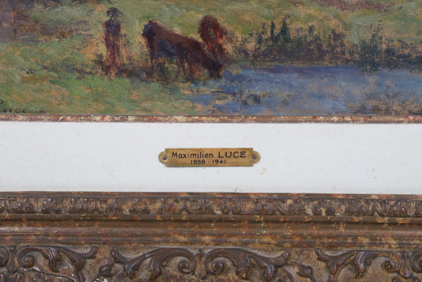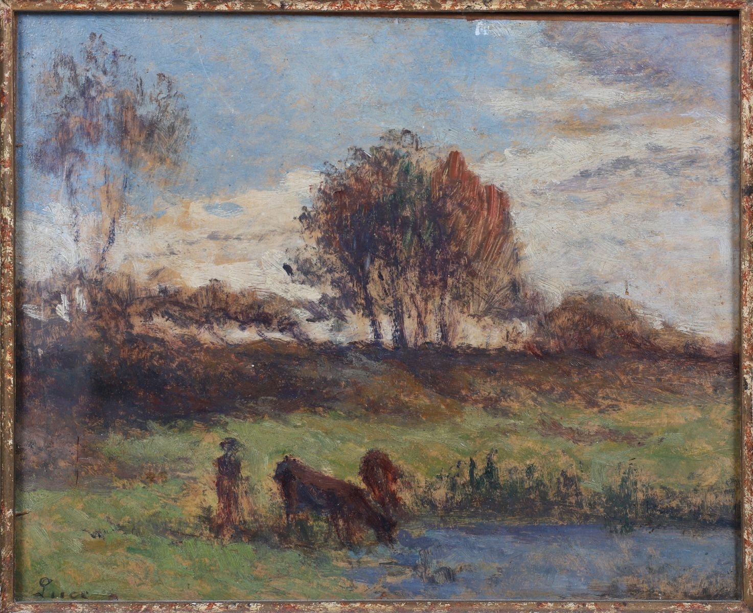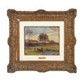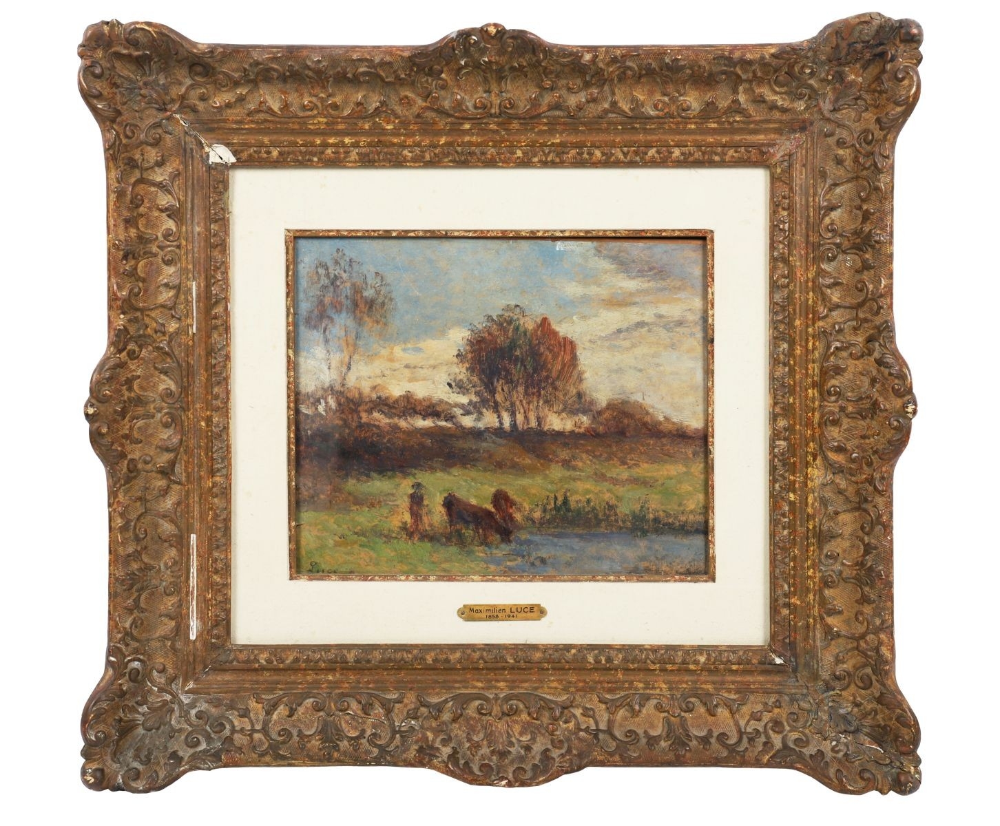 Oil on canvas, depicting figures and a dog beside a river under a luminous sky, characteristic of Luce’s impressionistic palette and atmospheric brushwork. Presented in a carved gilt frame with nameplate. PICTURES AND PRINTS Thursday 11th December 2025 19:42:40