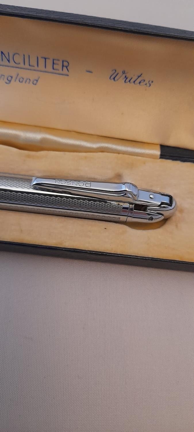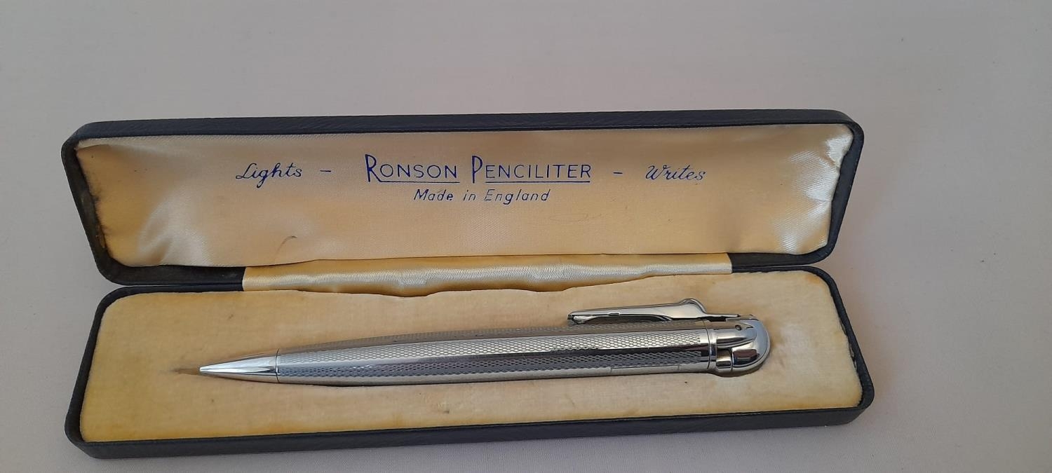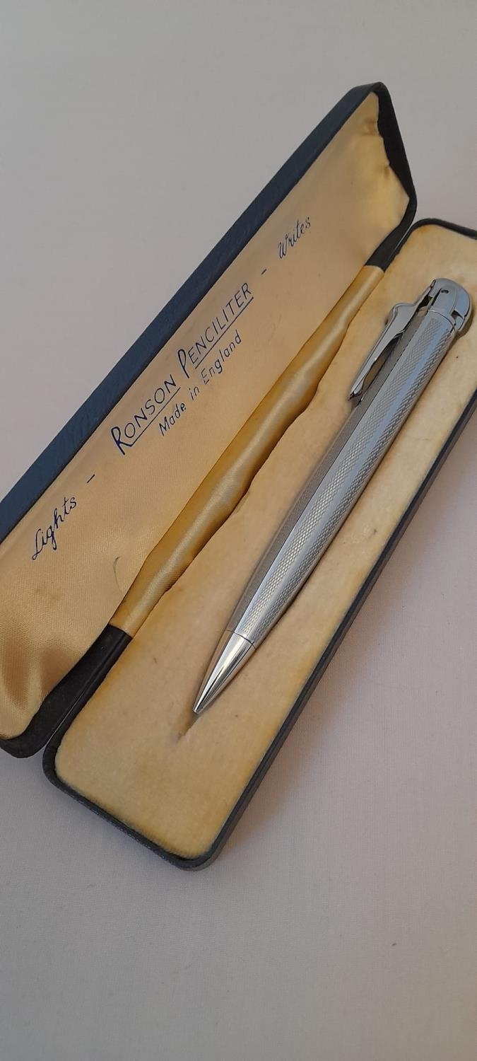 Vintage Ronson Lighter, Mechanical Pencil, In Original Case Good Condition Chrome Plate, Made In England