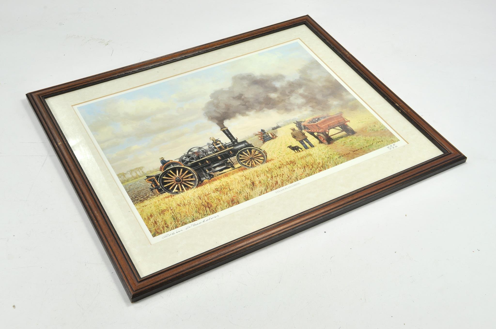 Limited Edition Signed Print by Robin Wheeldon - Framed Farm Scene - Steam Ploughing.
