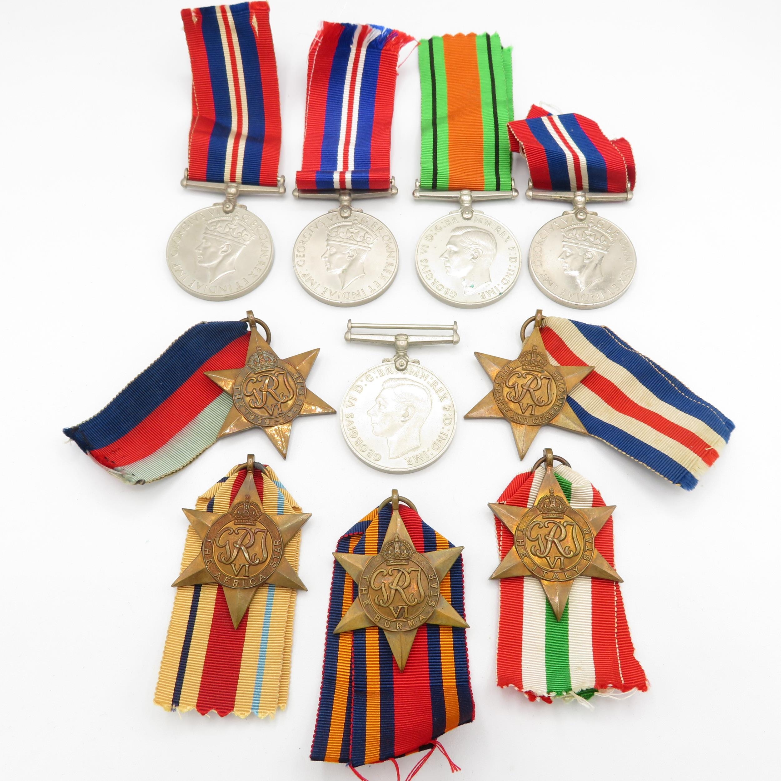 10x WWII medals inc. Burma, Africa, Italy stars etc.