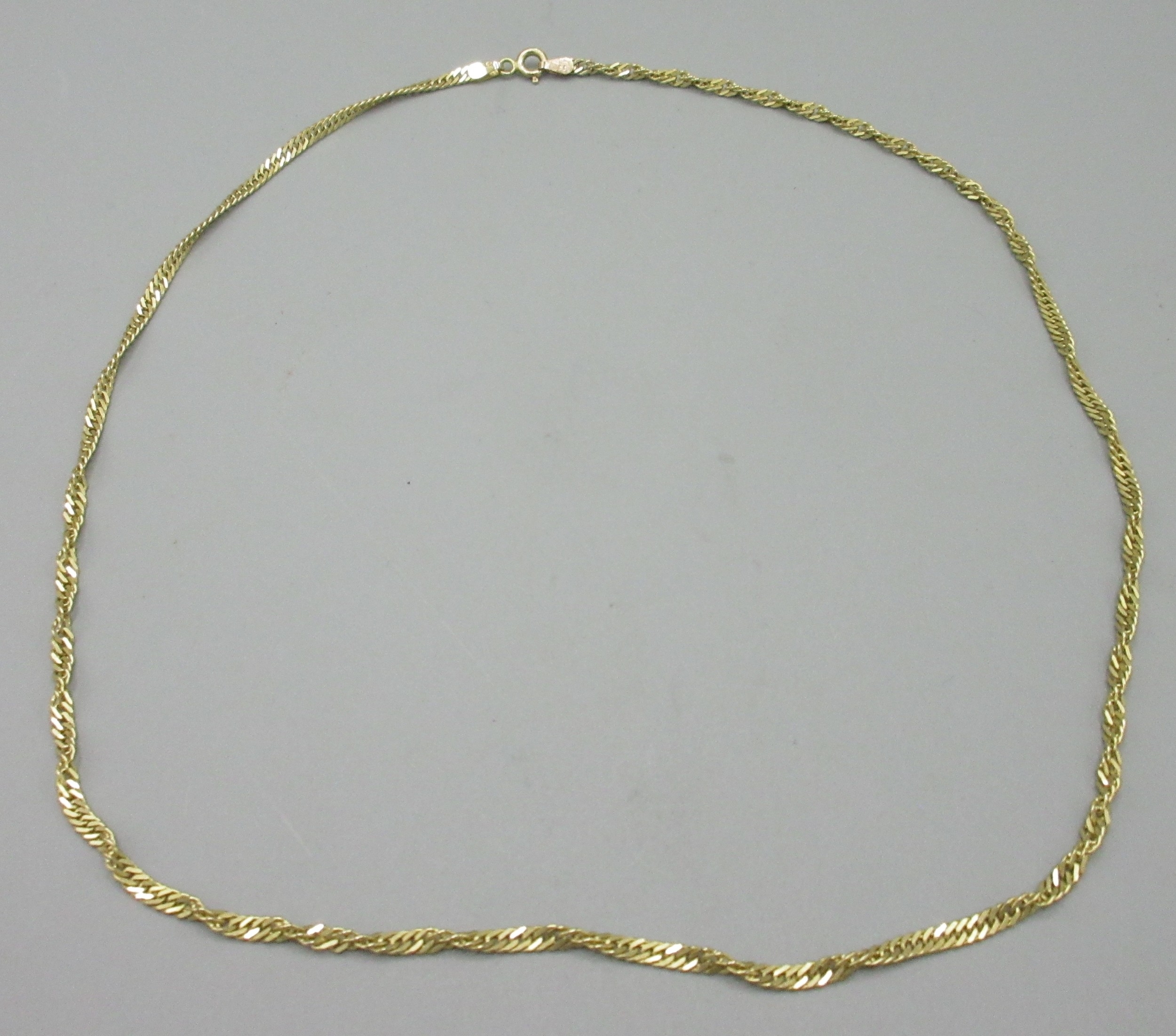 9ct yellow gold cuban link twist chain necklace, stamped 375, L45cm, 5.3g