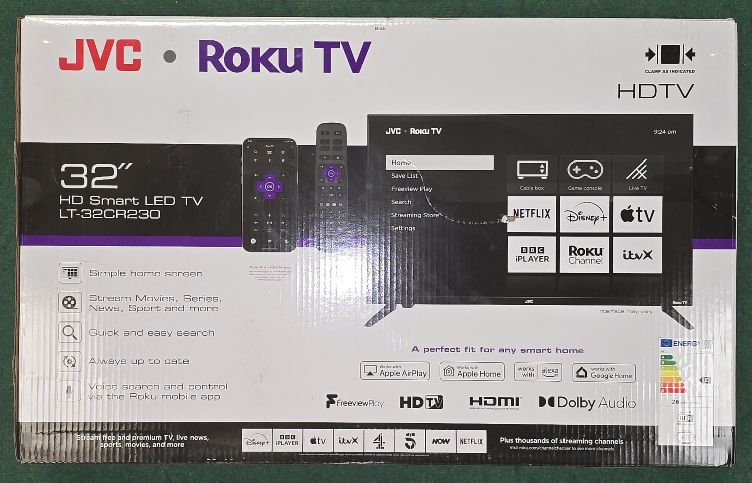JVC Roku TV 32" Smart LED TV model no. LT-32CR230. Brand new in sealed box.