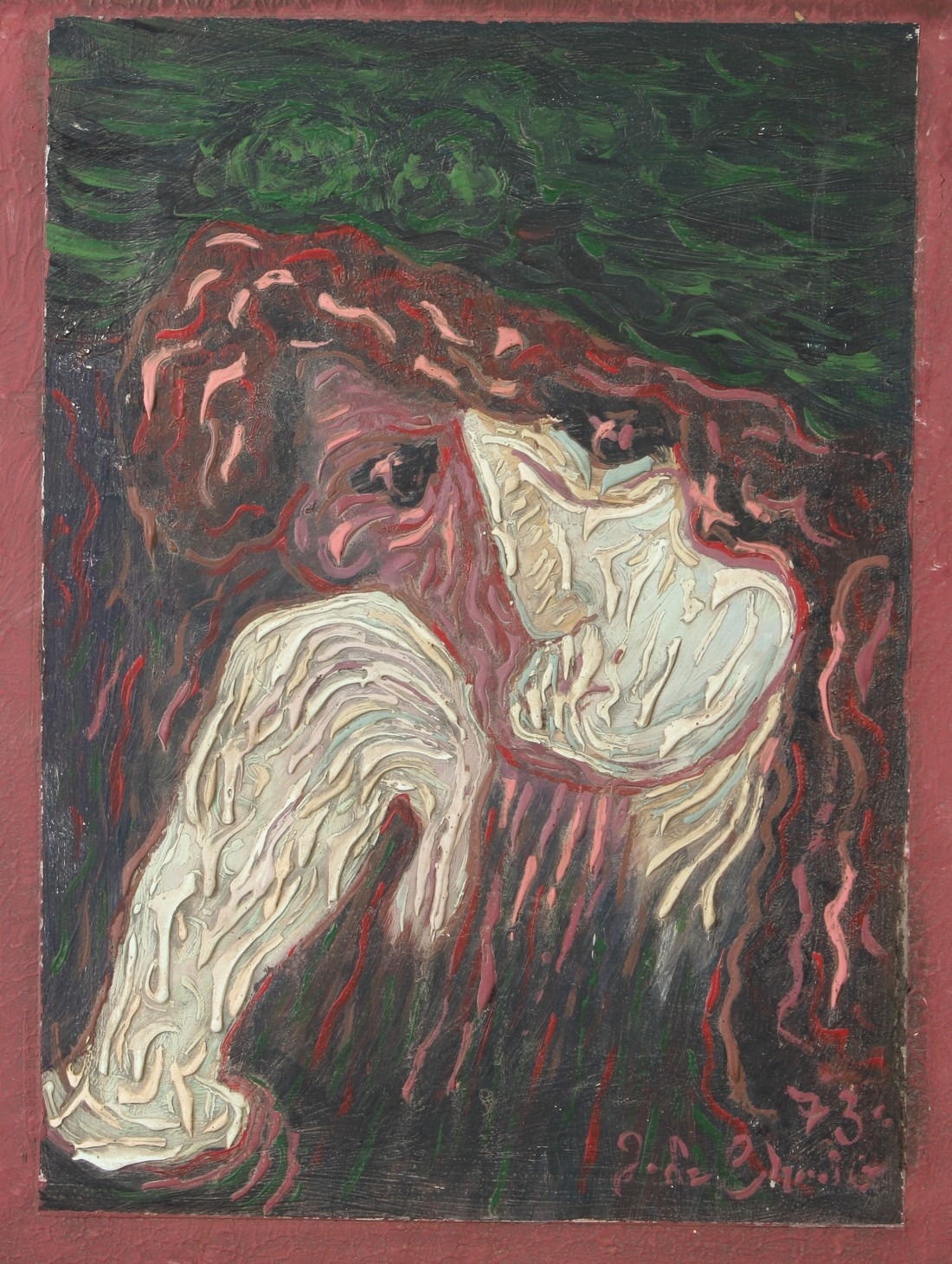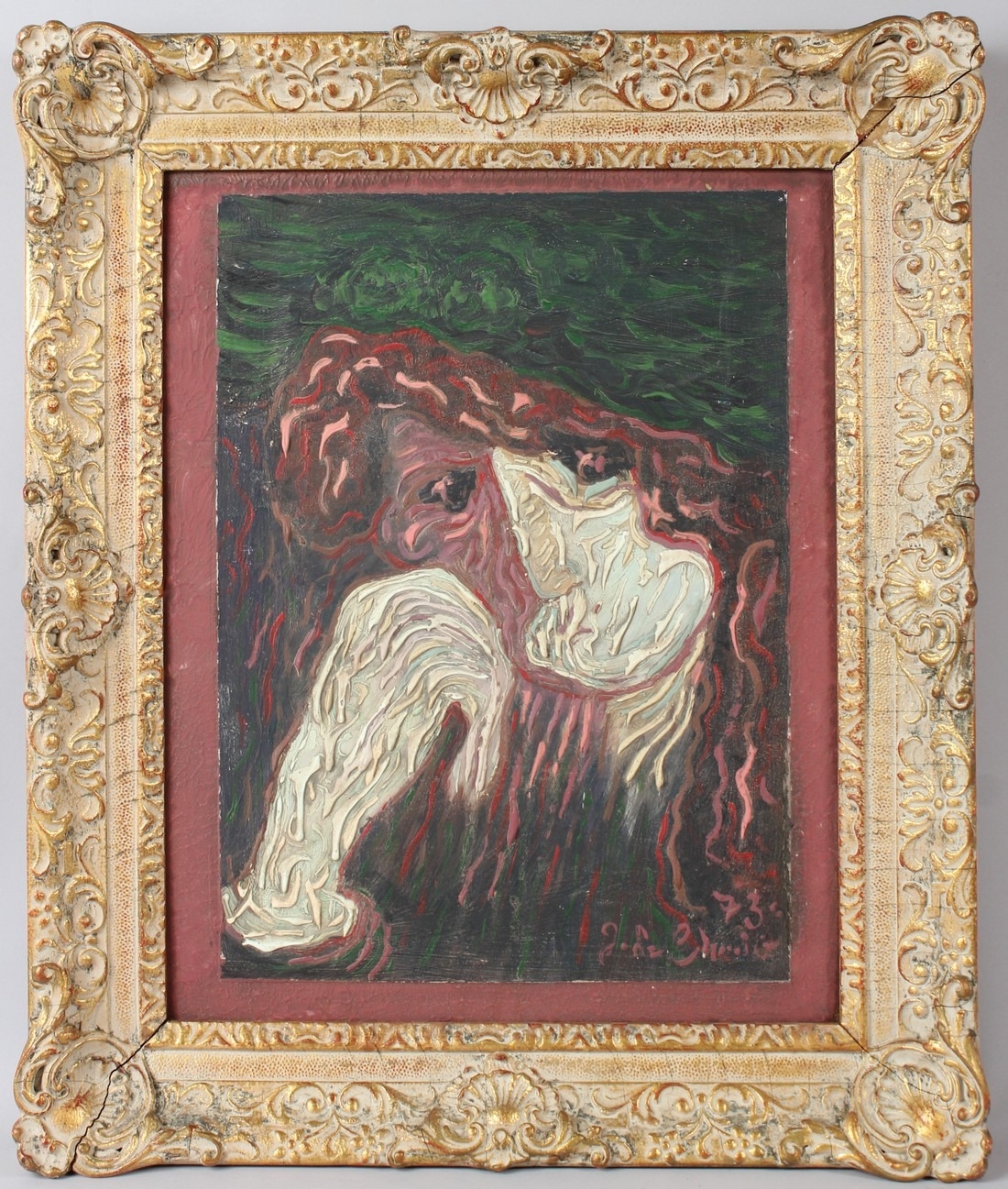 POSSIBLY CONTINENTAL SCHOOL Stylised portrait impasto oil on board signed indistinctly 45 x 33cm