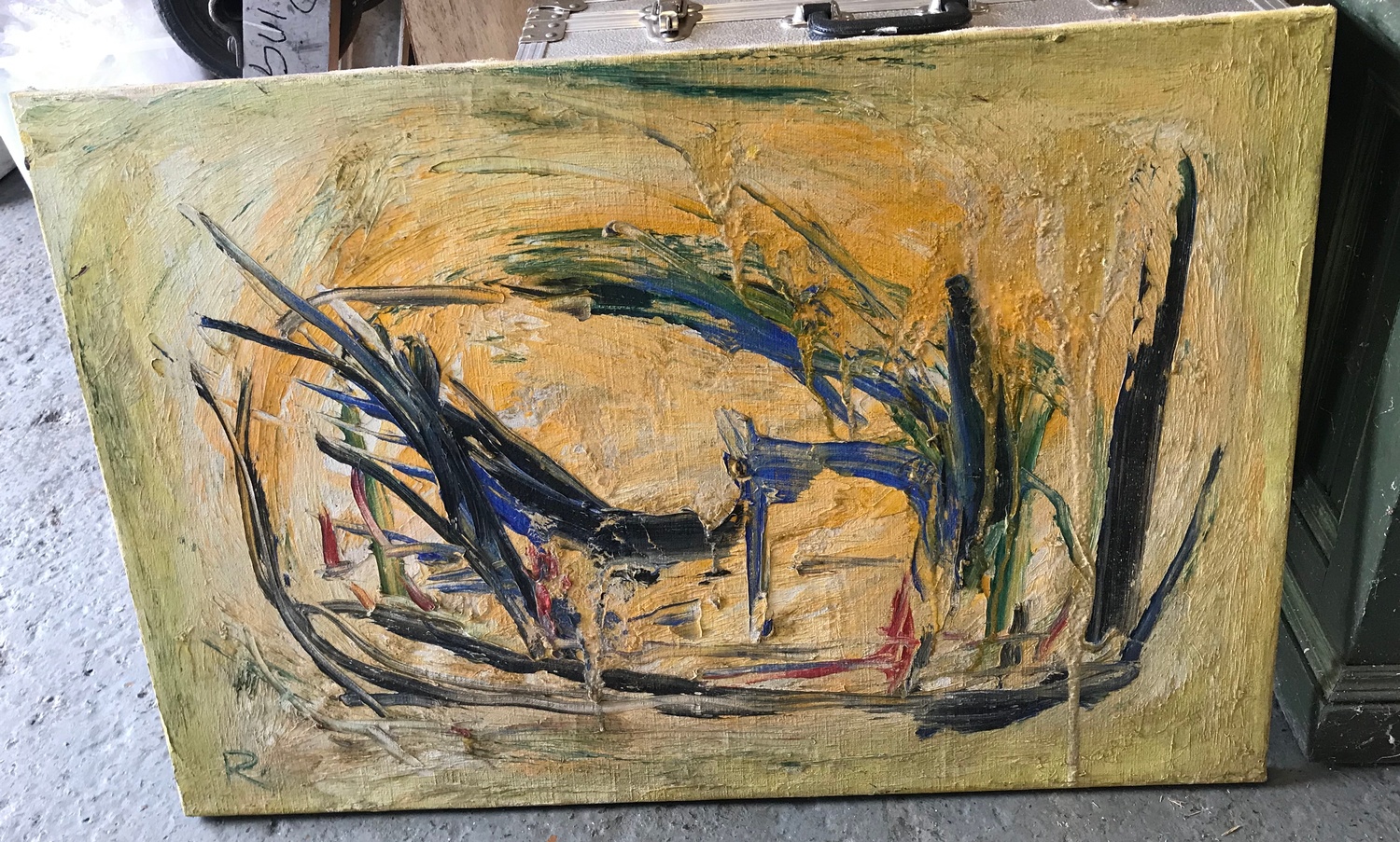 20th Century School - Abstract, oil on canvas, signed with an R, unframed -