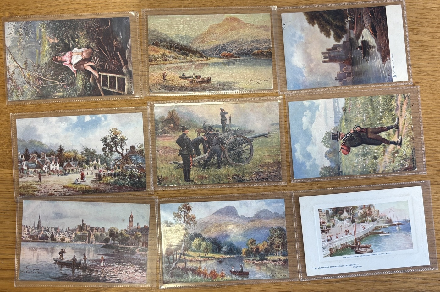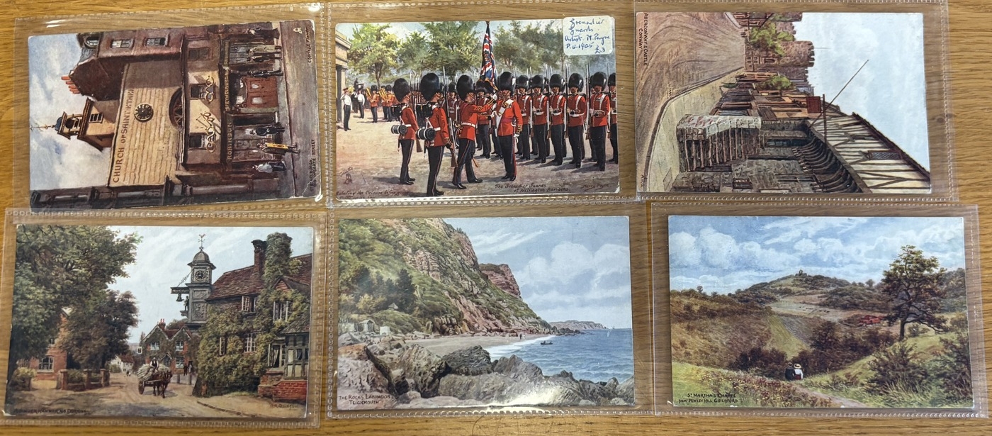 Publishers. Misc. coln of publishers with Tucks Oilettes (336) and Salmon art (351), with ptd, artist drawn and R.P's, incl. churches, high street scenes, military interest, riverside scenes, countryside scenes, etc. Qty. 687. (T)