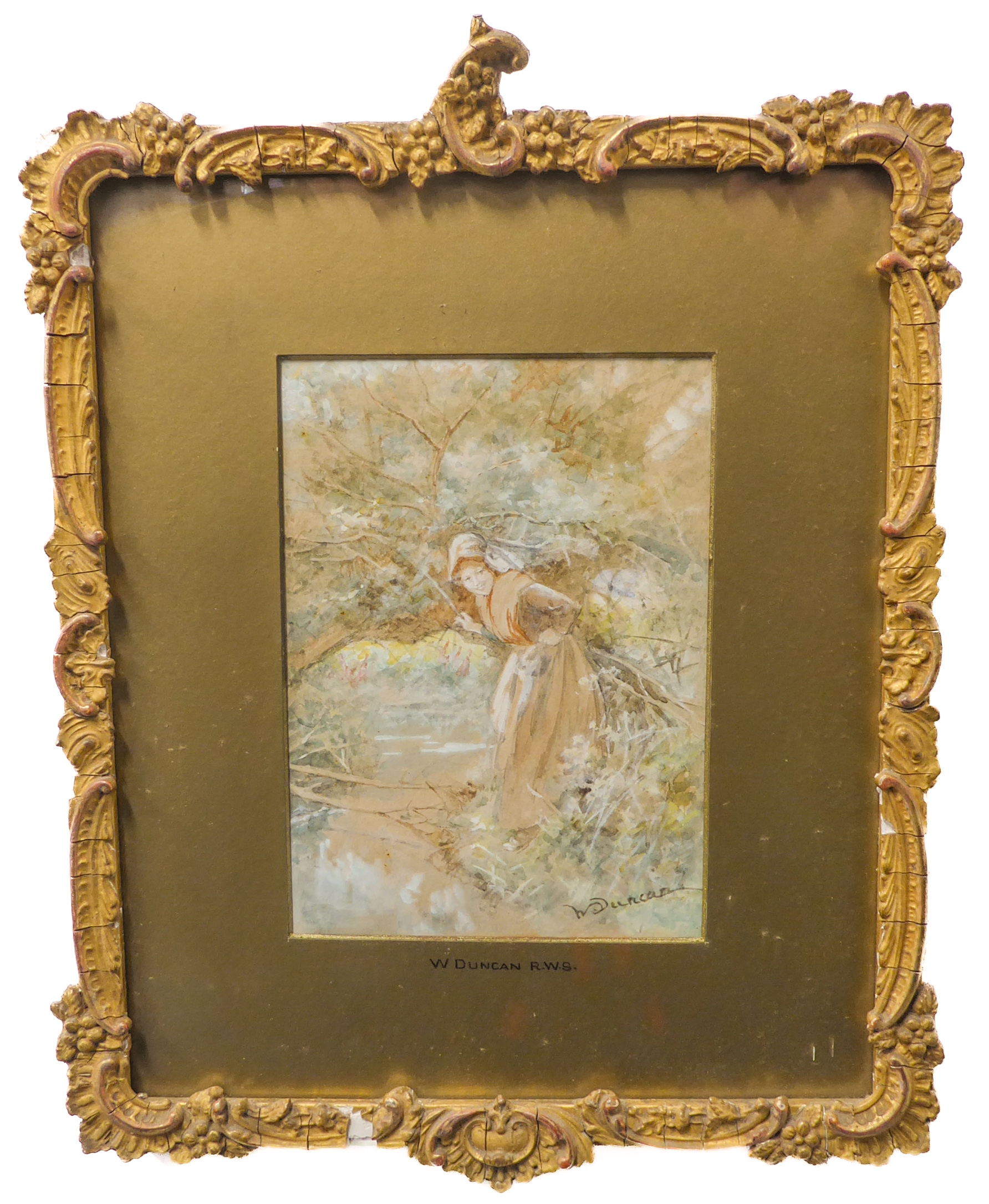 W. DUNCAN R.W.S. - a watercolour study, 'The Hiding Place', signed lower right, glazed gilt frame (18.5 cm x 13.5 cm)