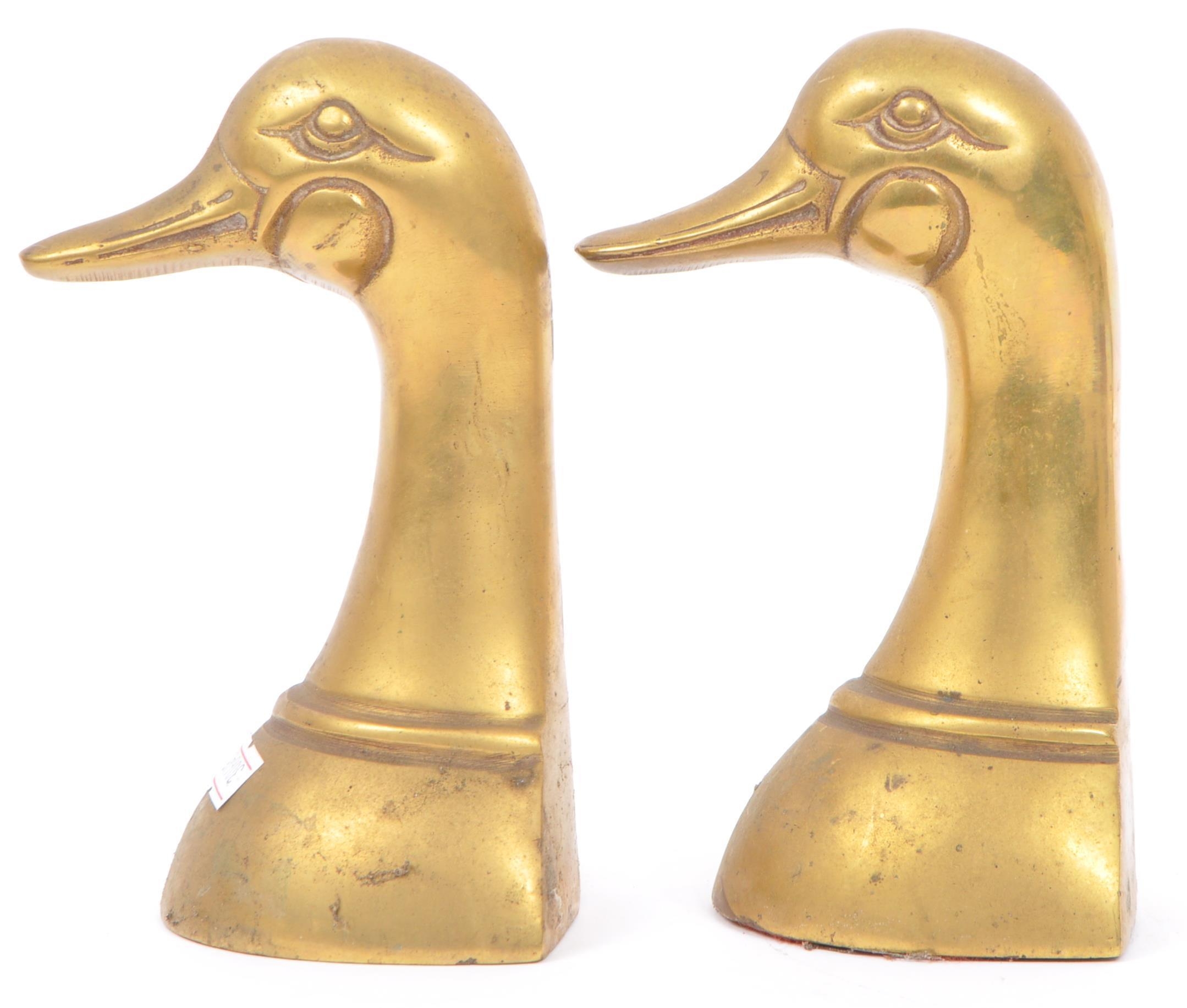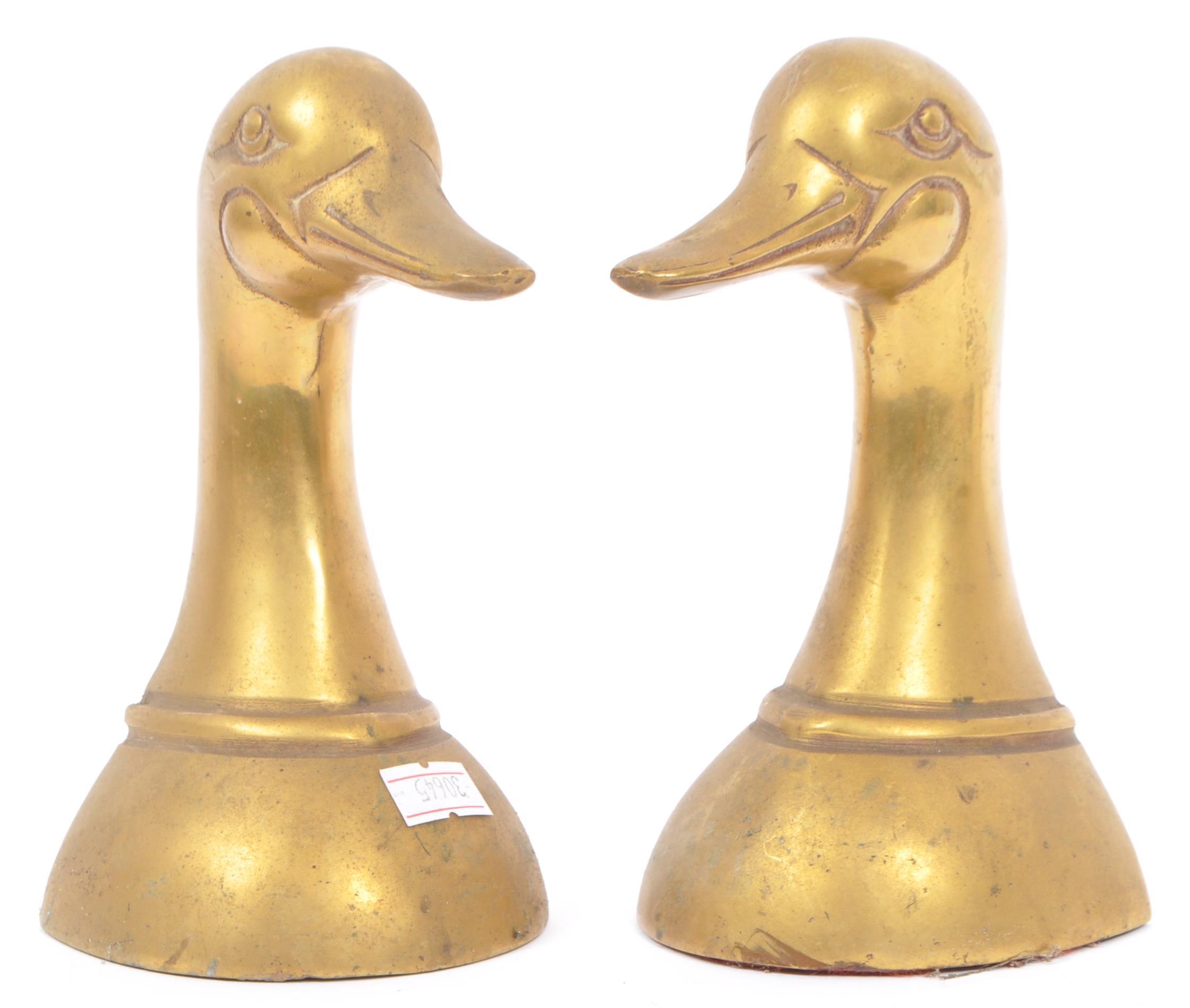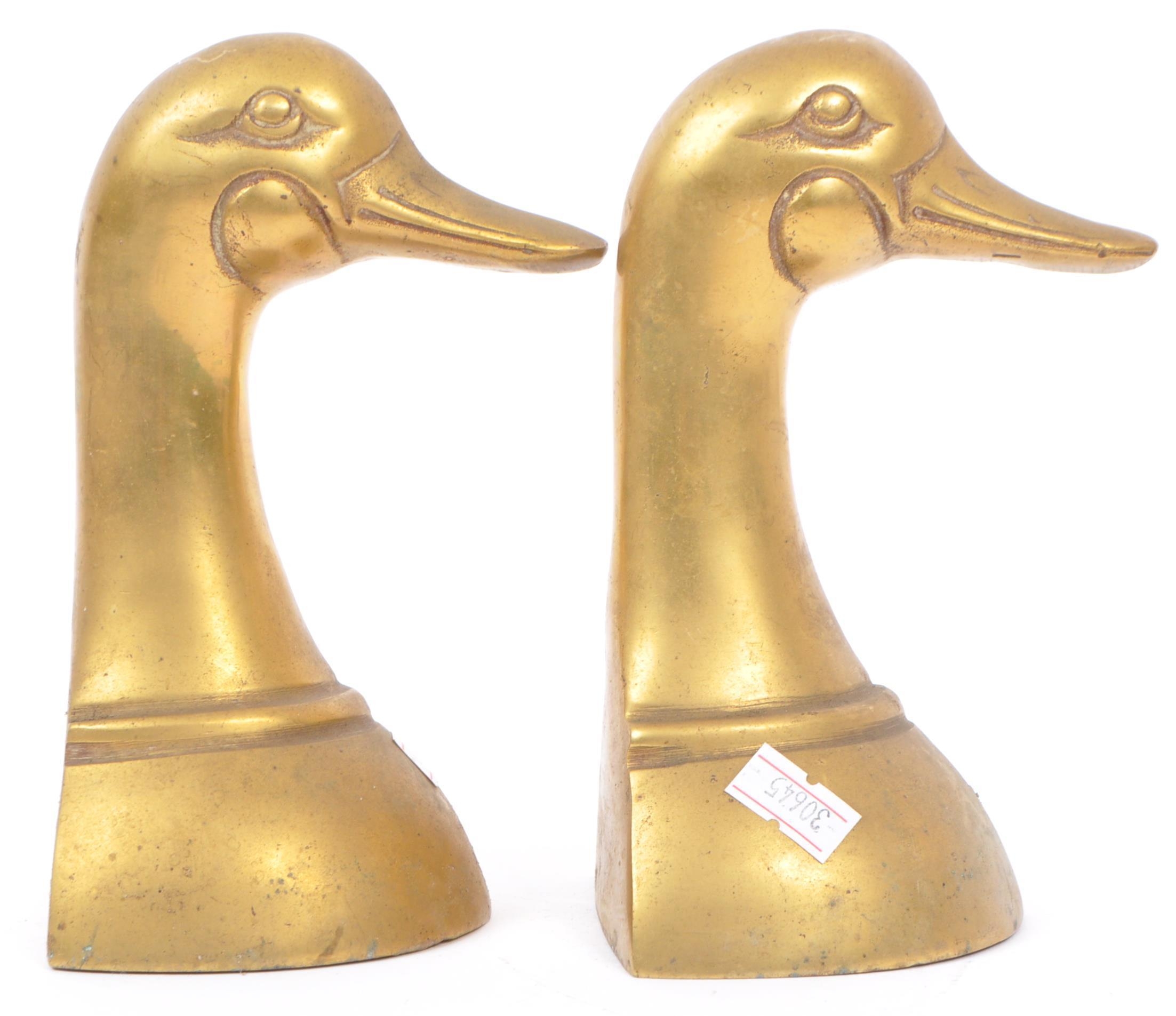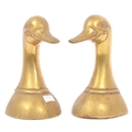 A vintage 20th century brass bookends in the form of duck heads / busts. Measures approx. 16cm tall.