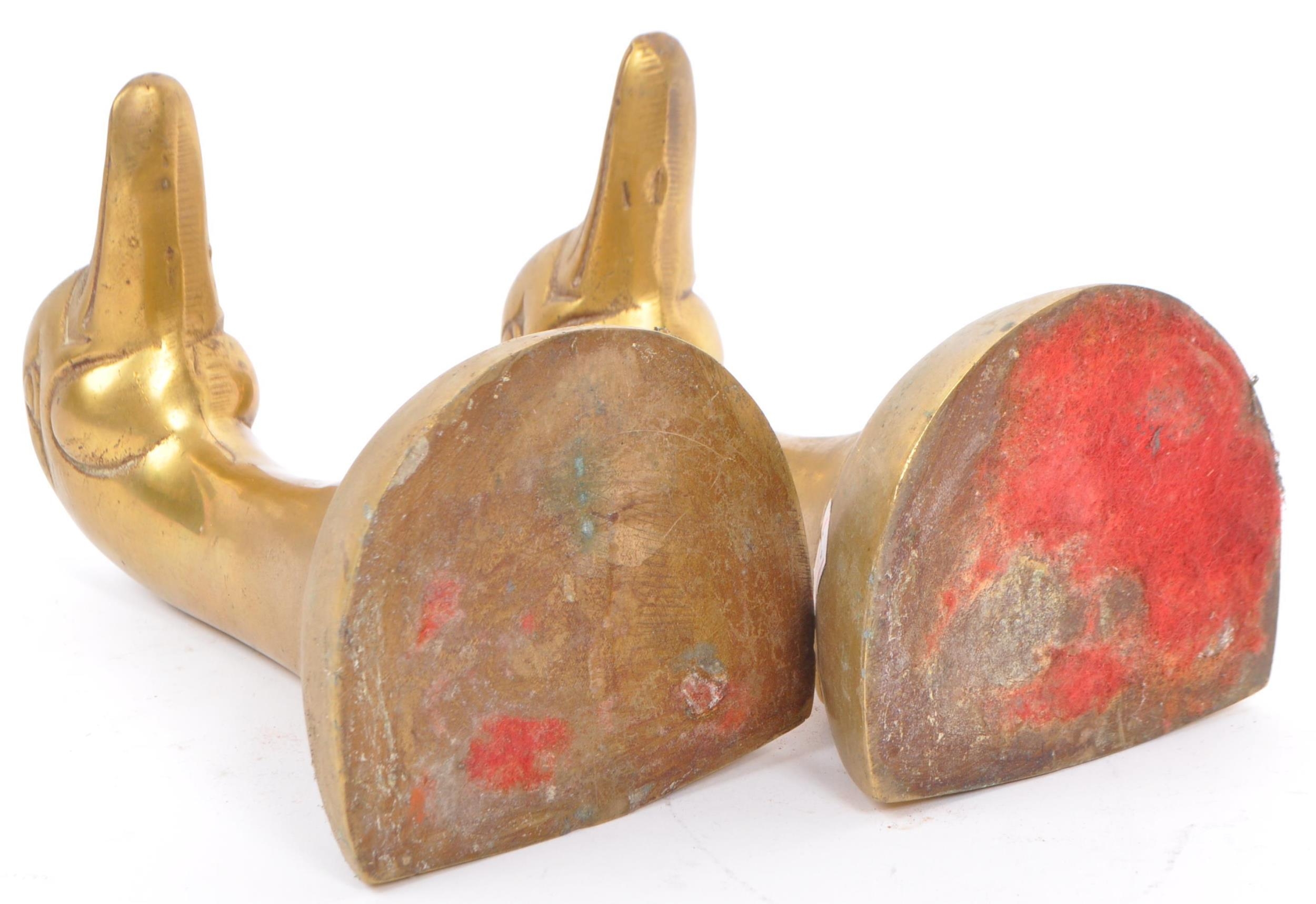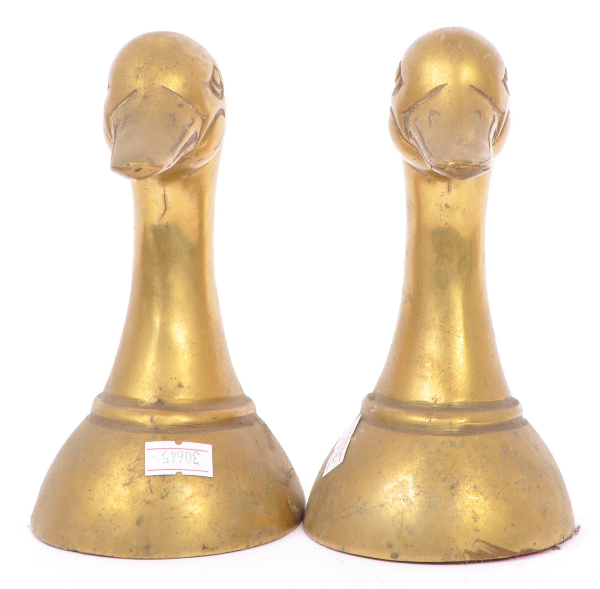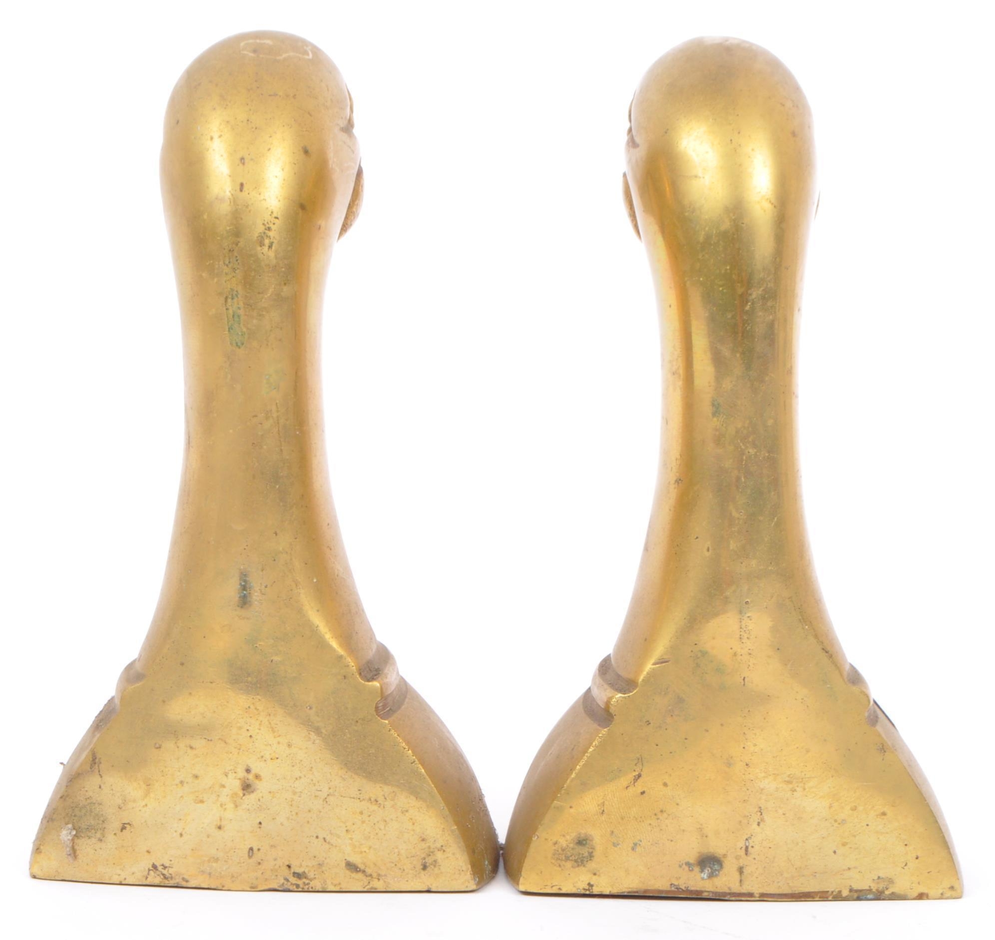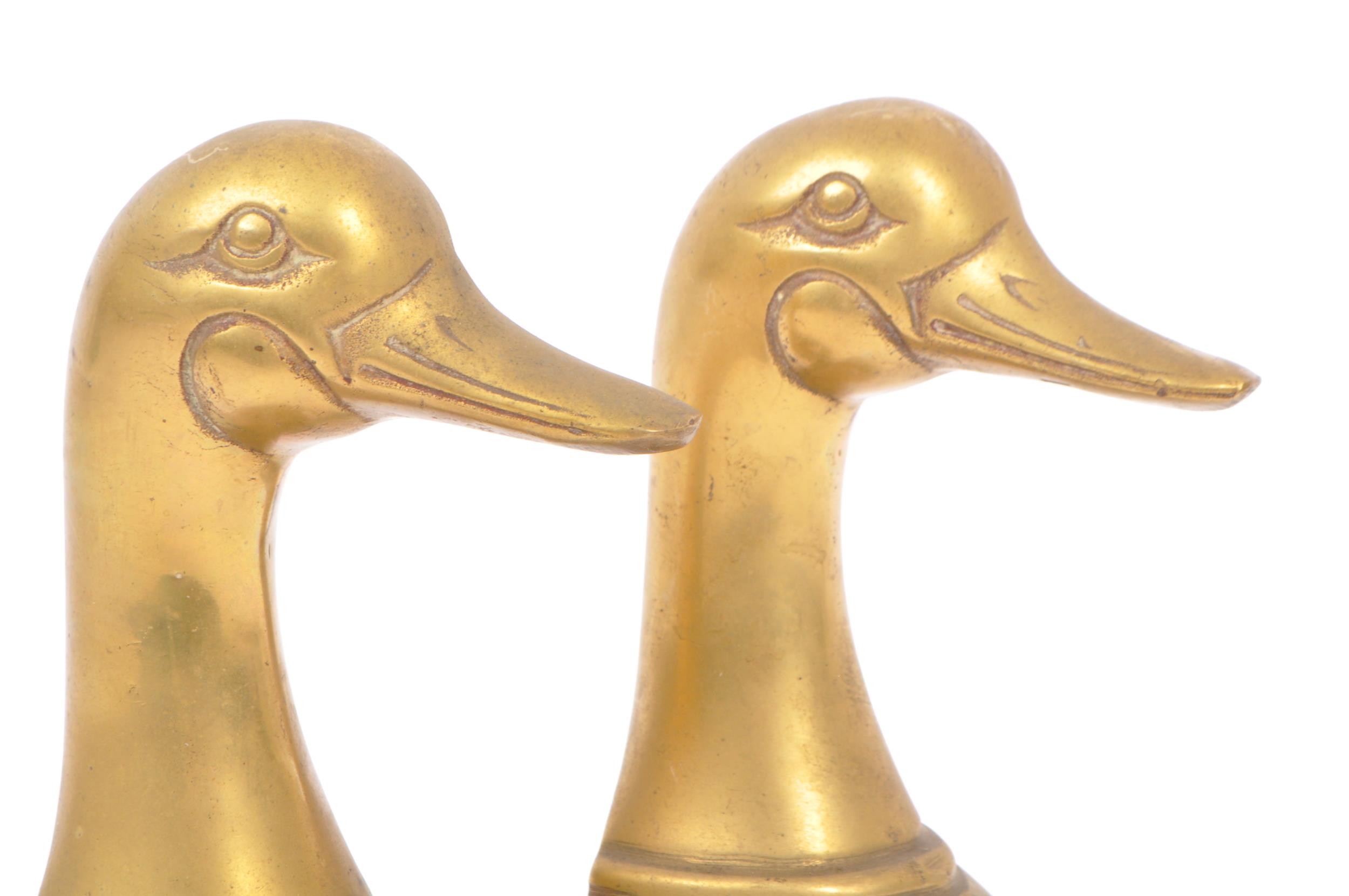 A vintage 20th century brass bookends in the form of duck heads / busts. Measures approx. 16cm tall.