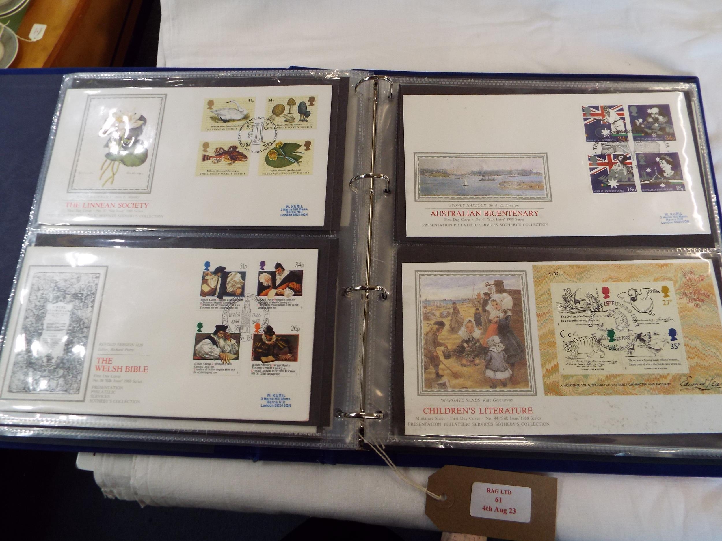 An album housing forty four presentation philatelic services First Day covers to include 'Sport', 'Sir Issac Newton', 'Children's Literature', etc