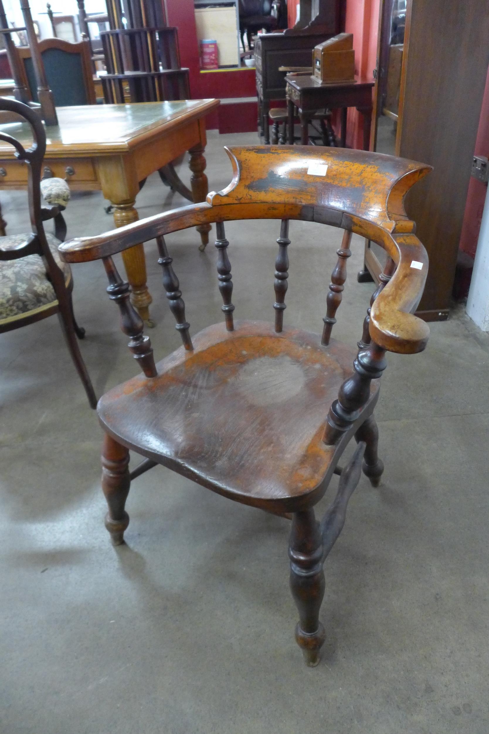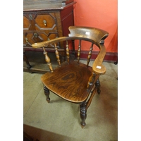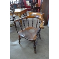 A Victorian elm, beech and yew wood smokers bow chair