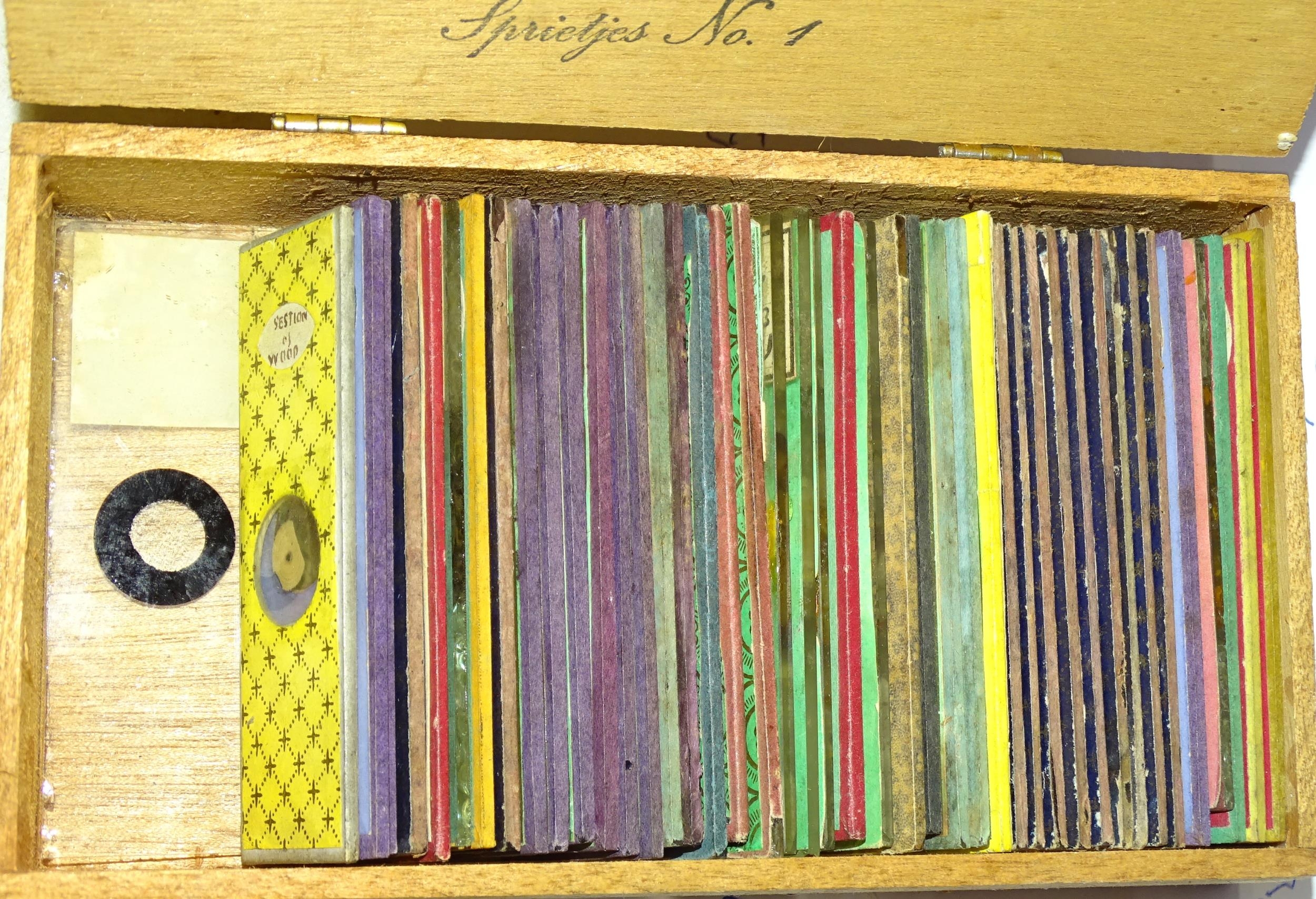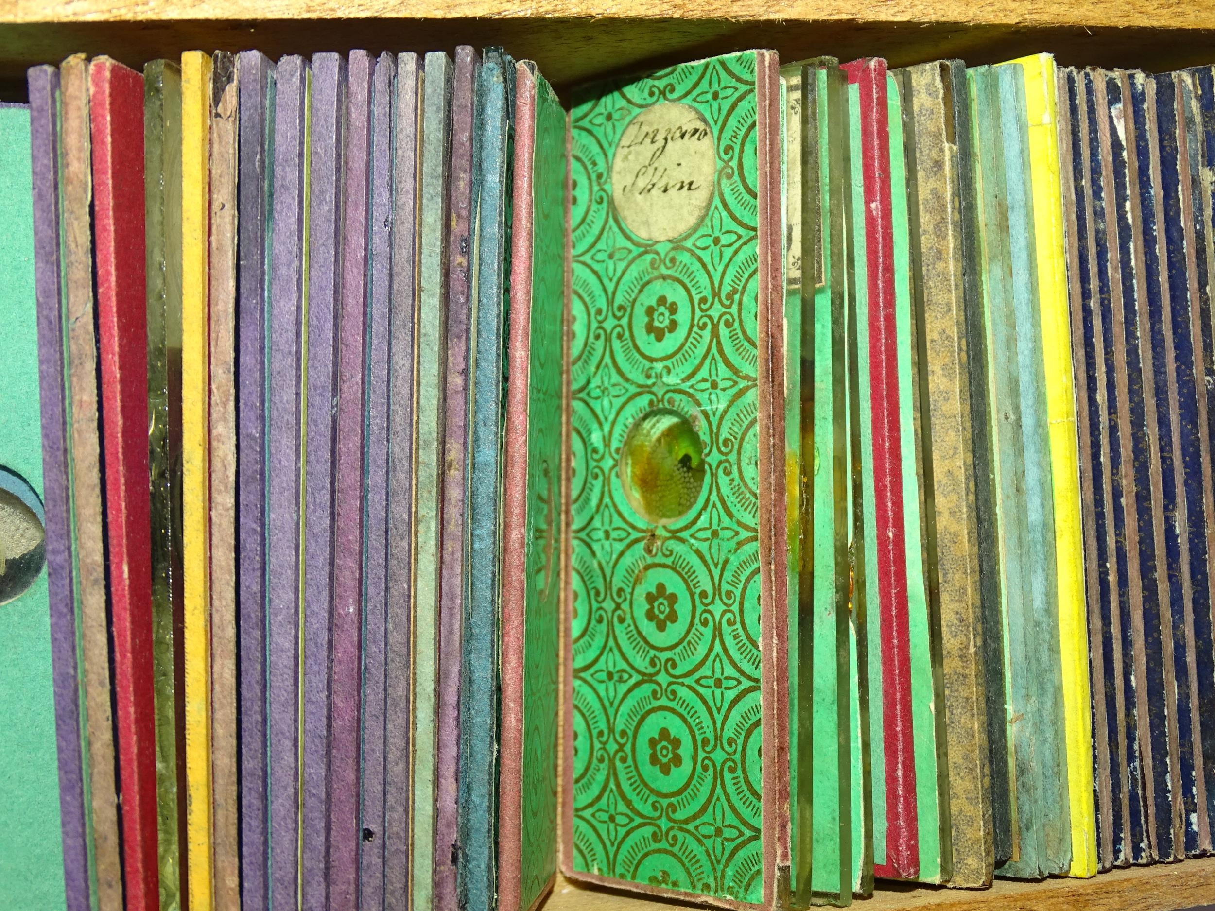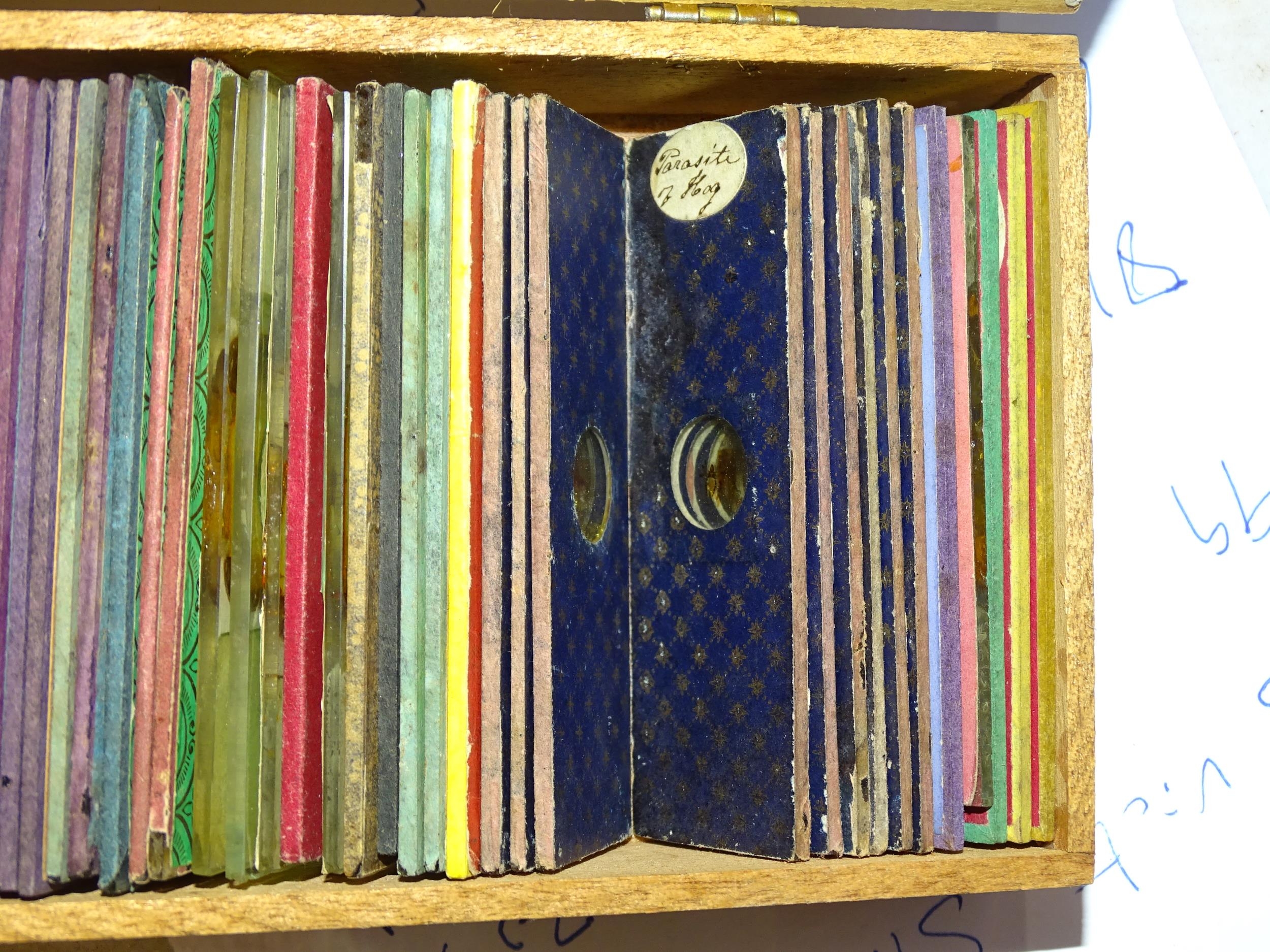 A collection of forty-five Victorian microscope slides.