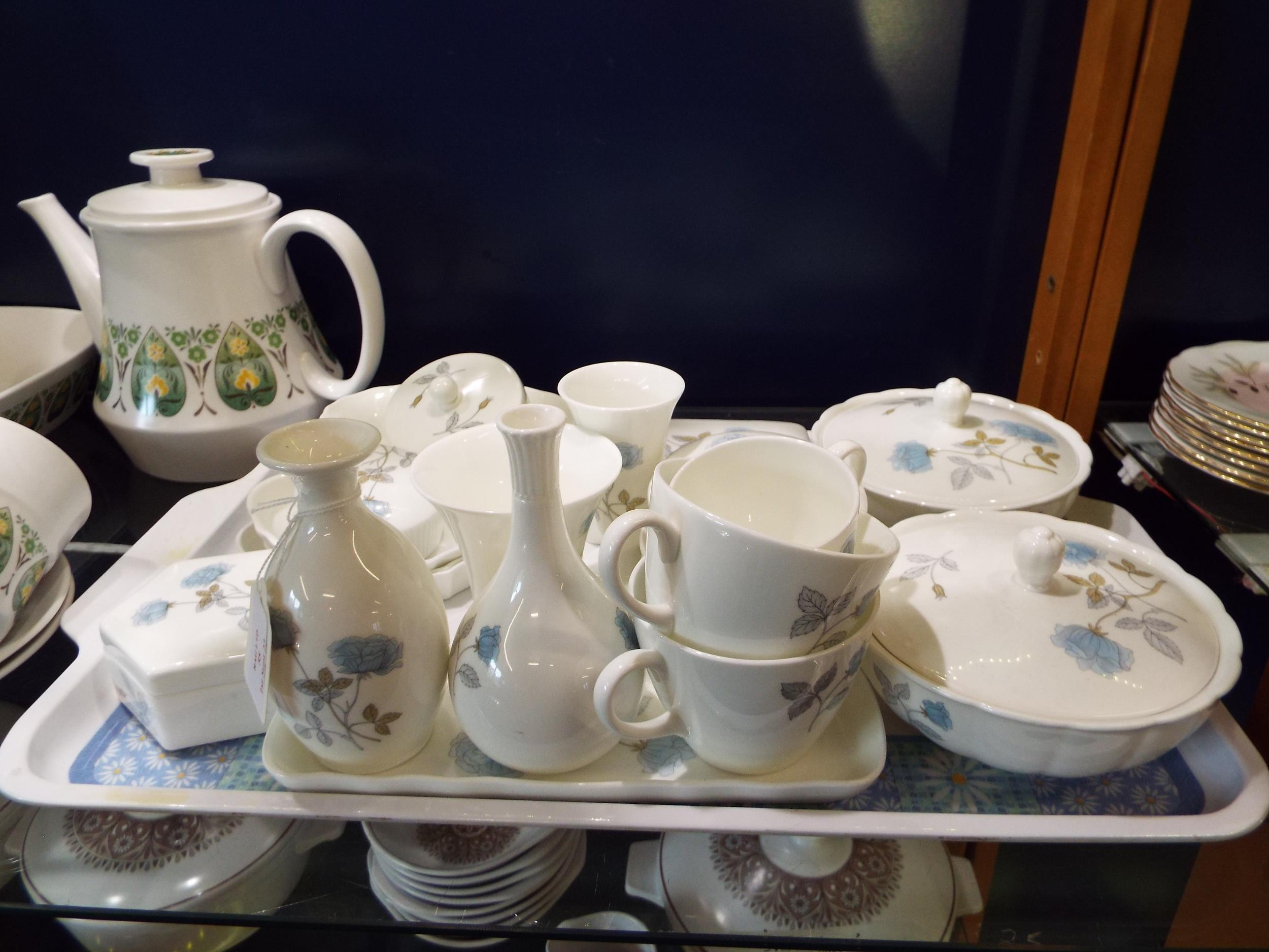 A mixed selection of Wedgwood 'Ice Rose' china to include vases, lidded pots, pin dishes etc