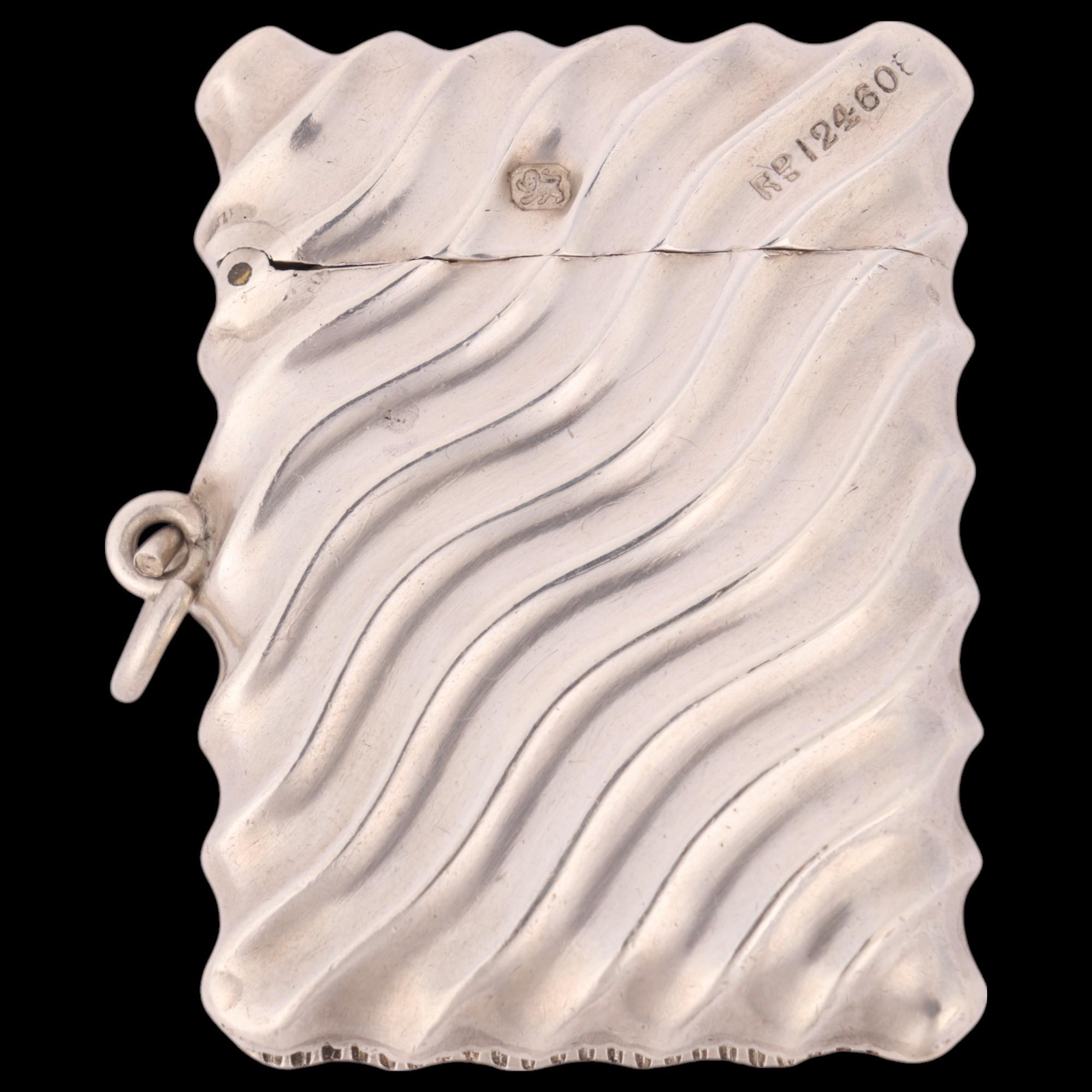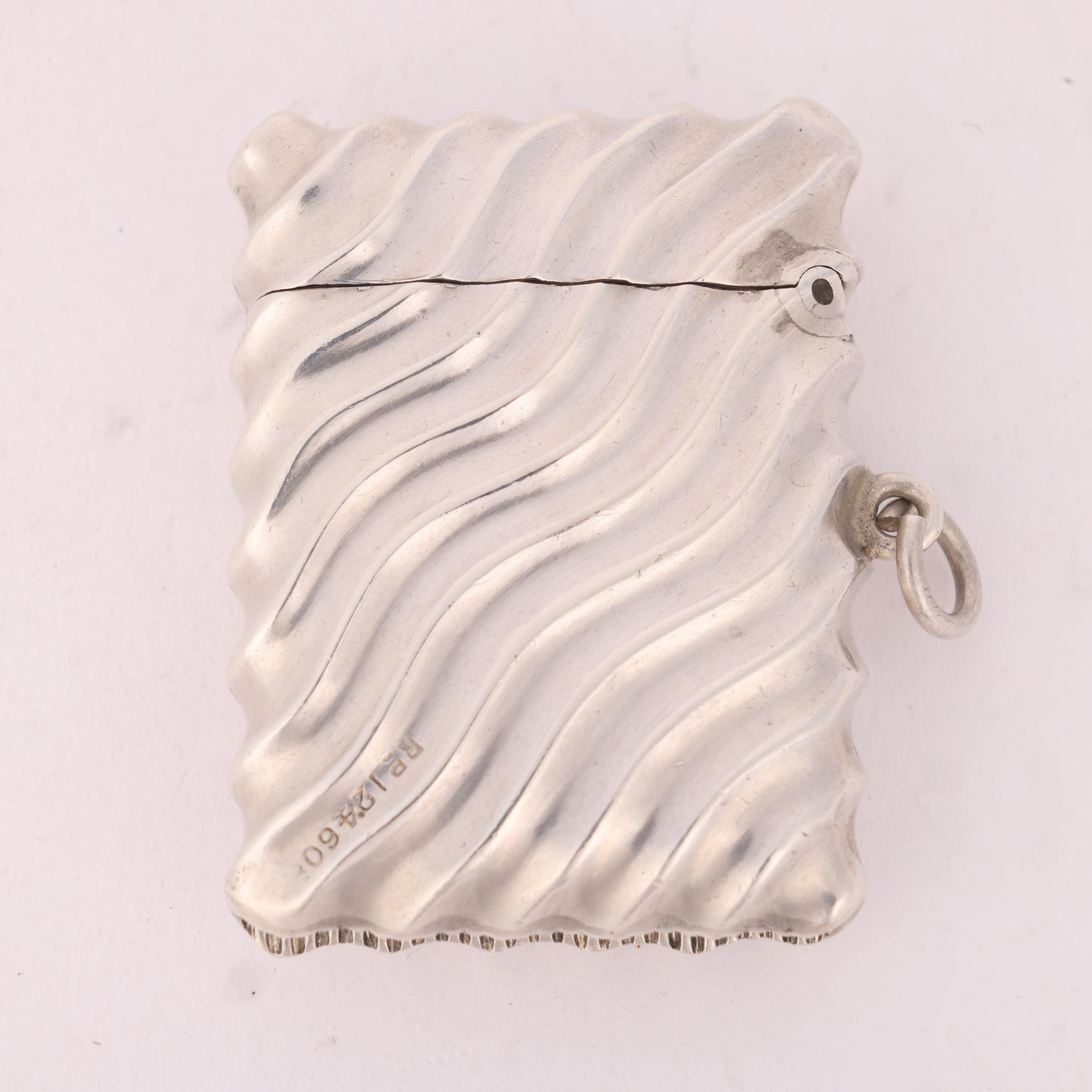A late Victorian silver Vesta case, James Dixon & Sons, Sheffield 1895, rectangular form with wavy fluted decoration, registration no. 124608, 4cm x 3cm, 21.9g