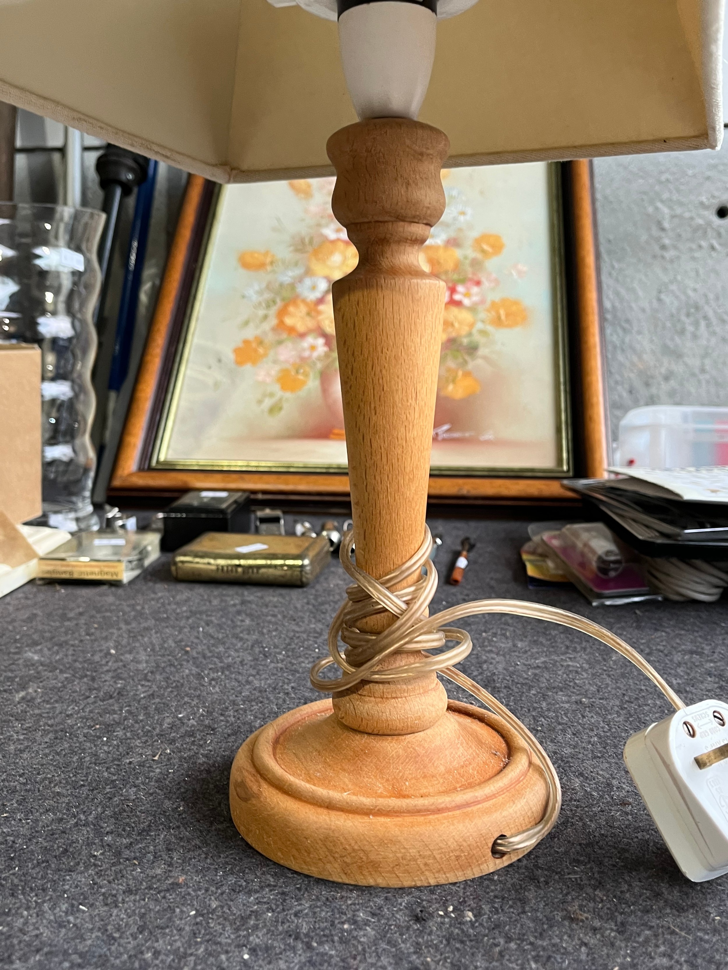 Wooden table lamp and shade