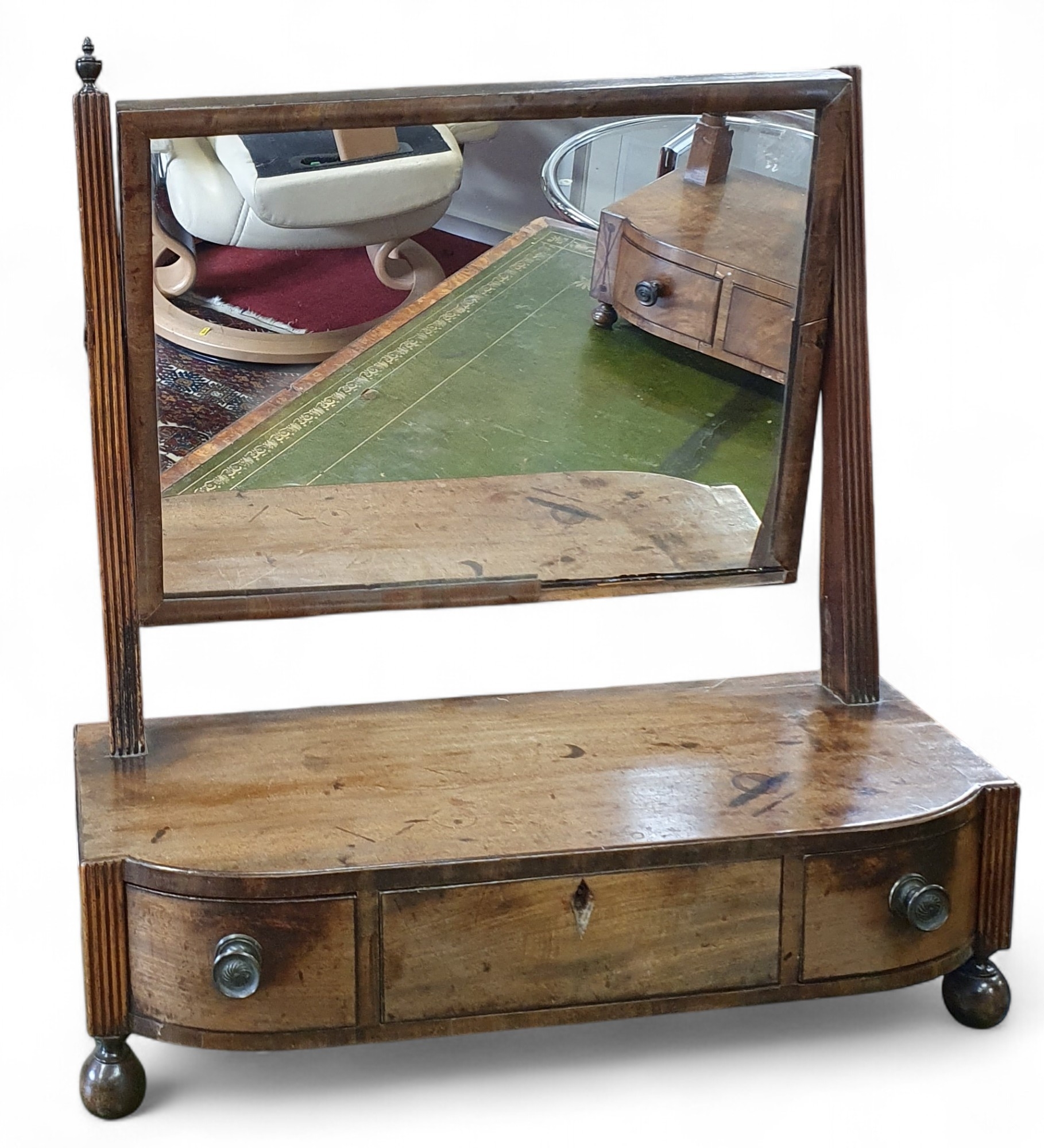 A Regency Mahogany Crutch Mirror with triple frieze drawer and ebony inlay. 51 x 21 x H 57 cm approx.