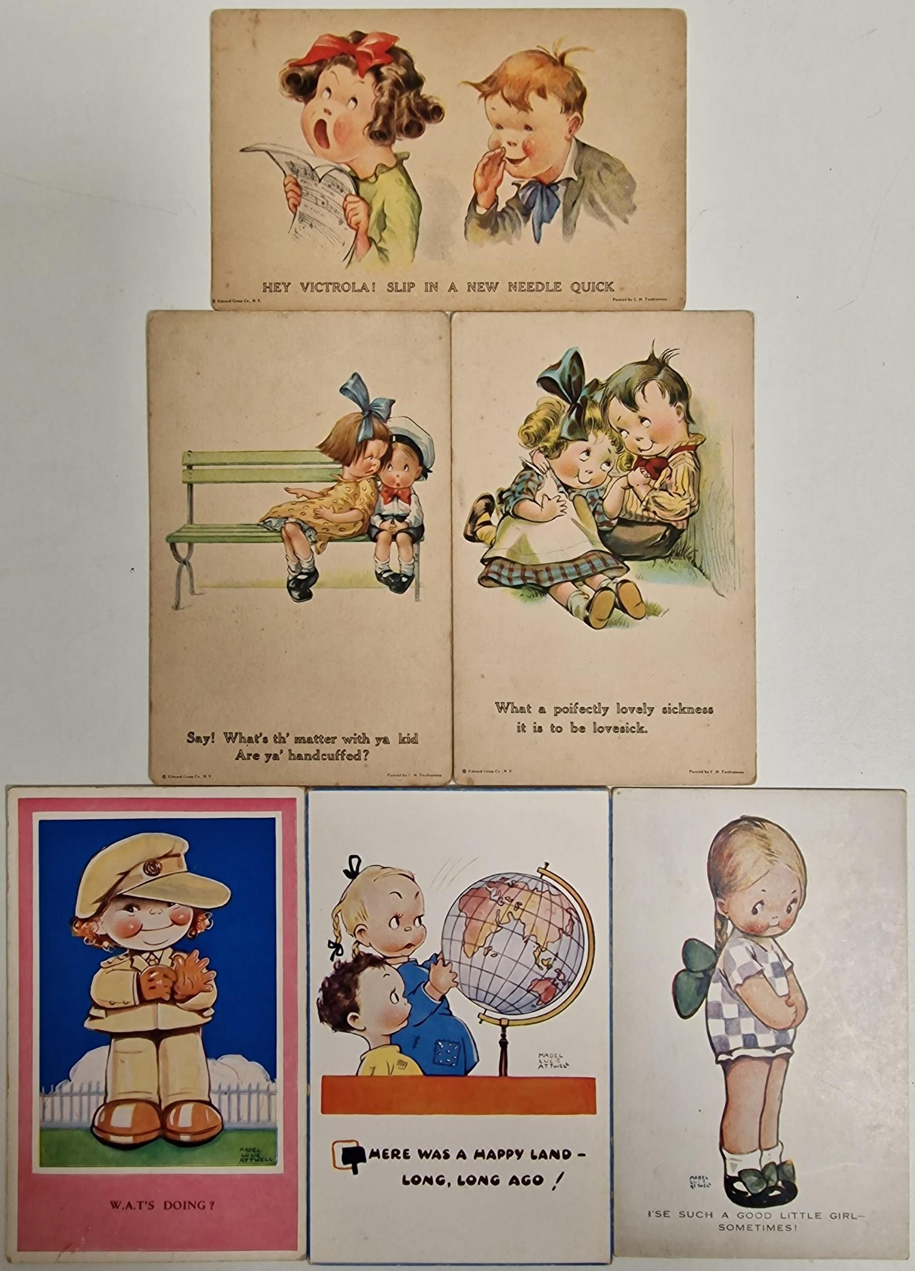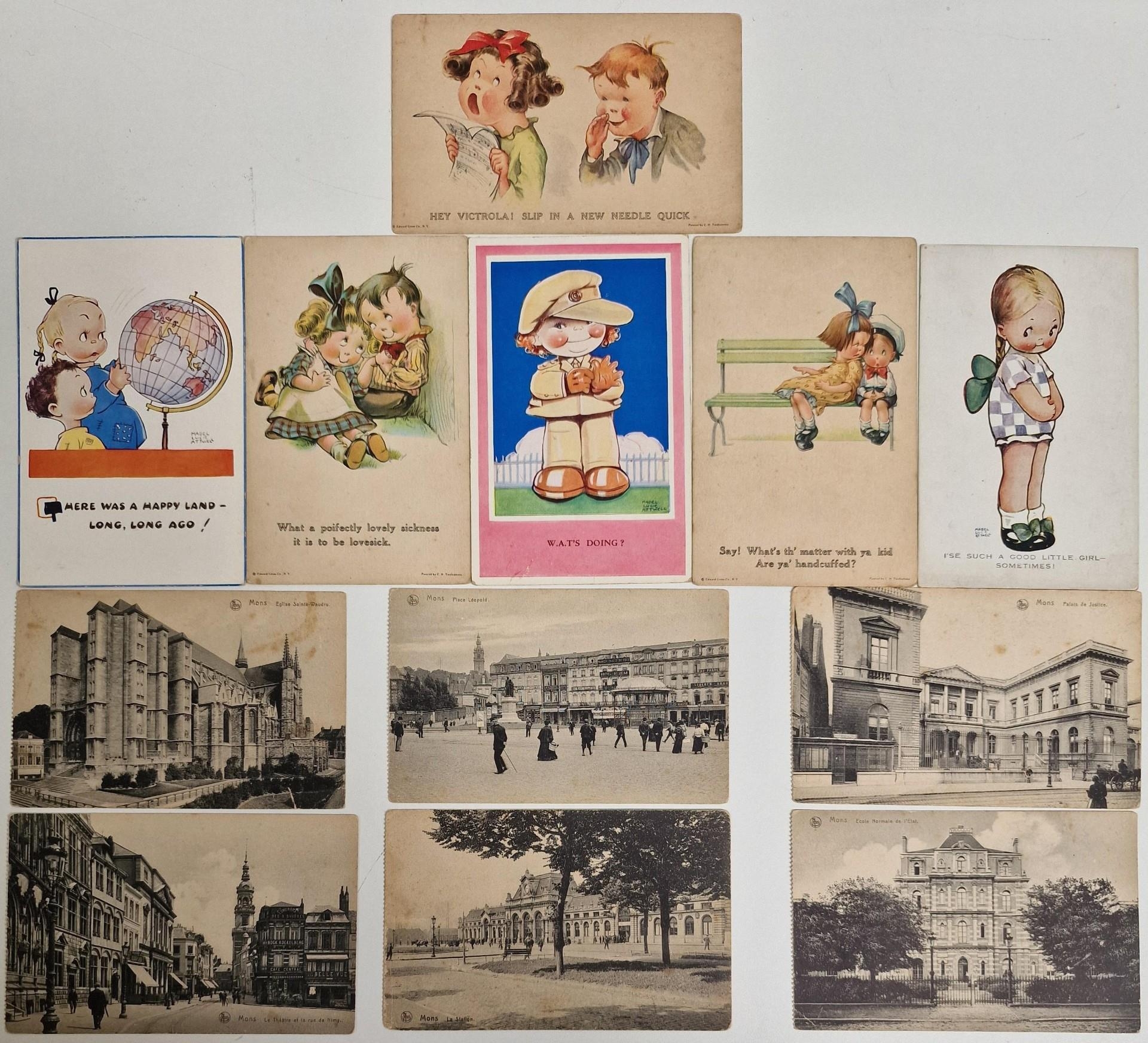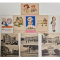 A collection of twelve vintage postcards. To include humorous & city building examples.