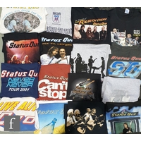 A collection of Status Quo related memorabilia to include a Live Alive Quo tour jacket, size XXL, a 1988 tour scarf, thirty-four various tour programmes dating from the 1980s, 1990s and 2000s, and the Status Quo hardback autobiography. (qty)