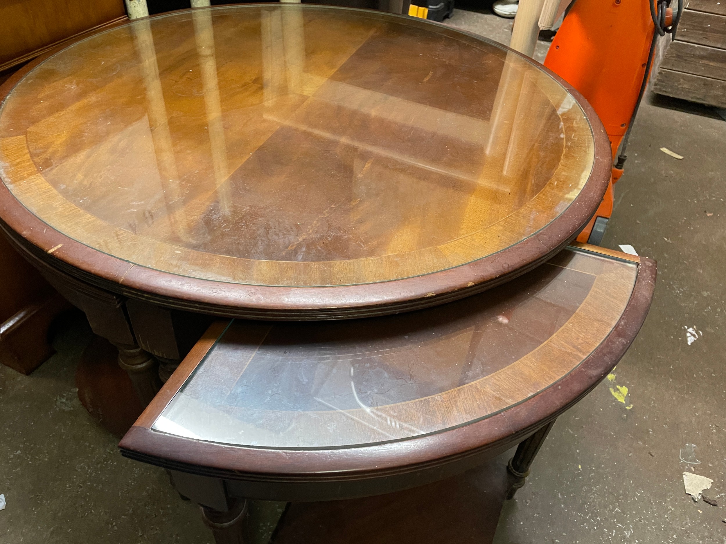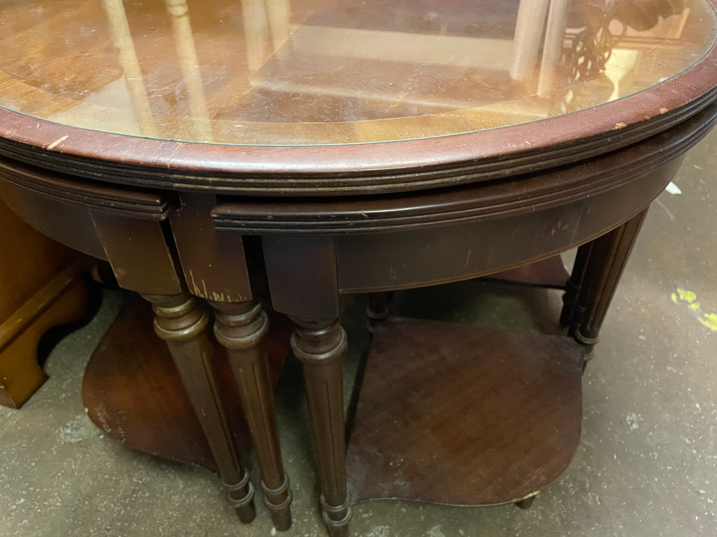 CIRCULAR MAHOGANY GLASS TOP NEST OF TABLES