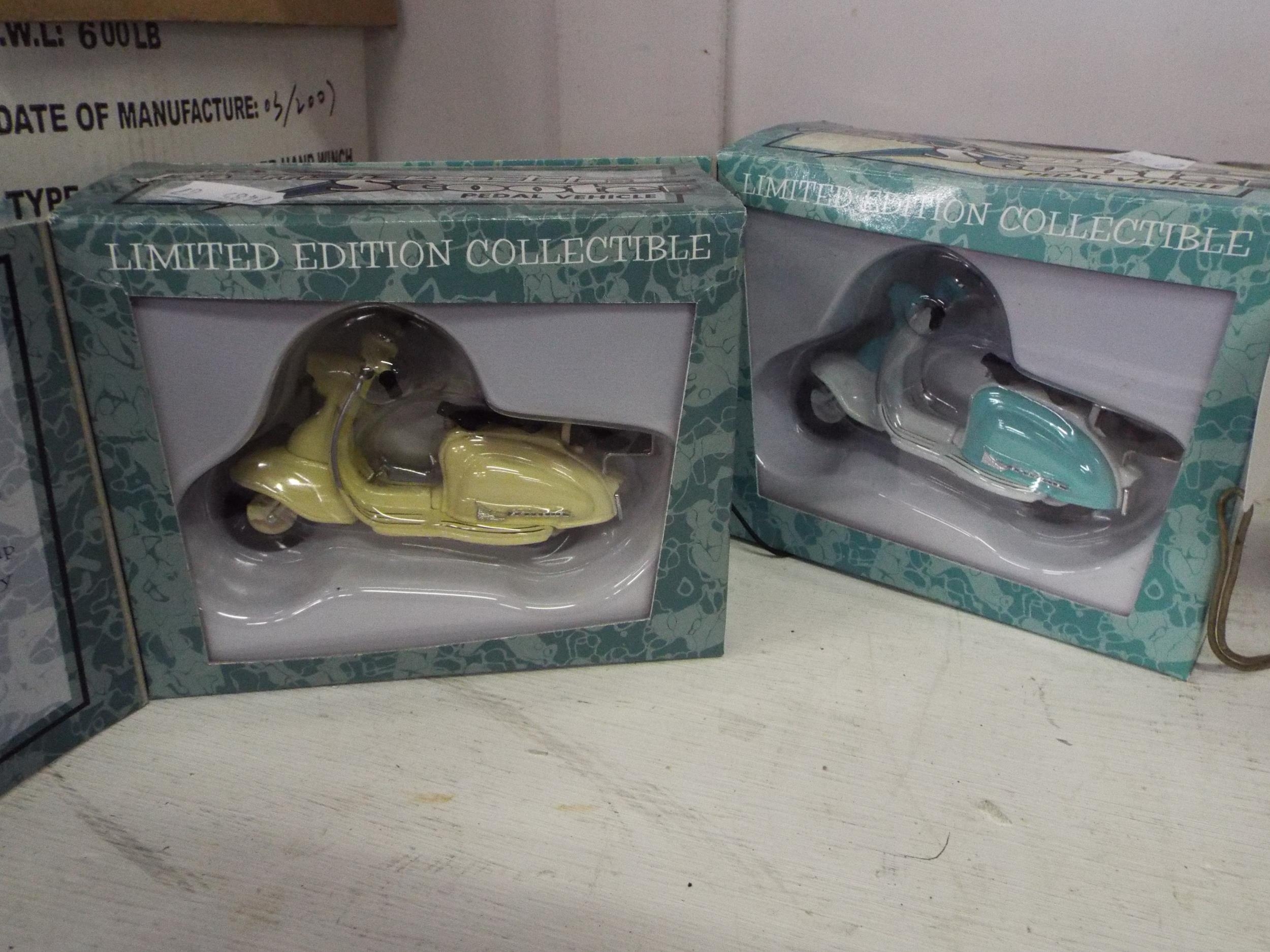 A pair of boxed Xonex Lambretta scooter models