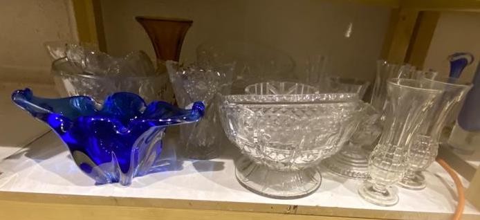 Mixed glassware including crystal, mainly bowls with a Murano style blue glass bowl. Not available for in-house P&P