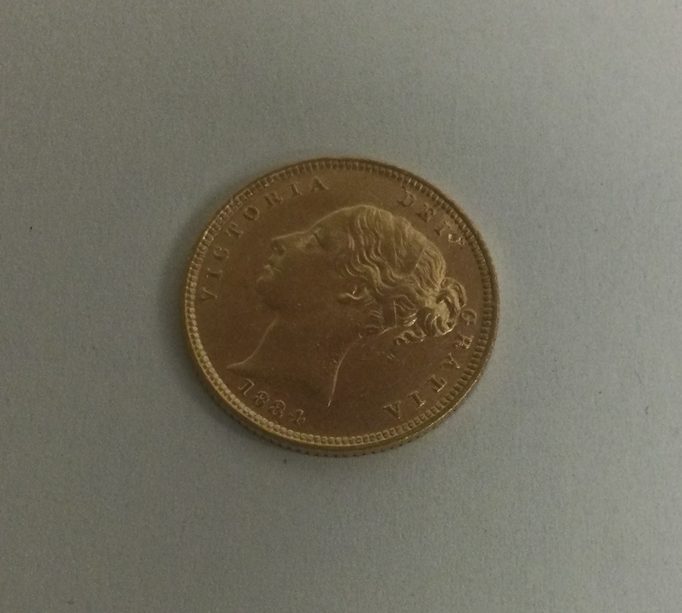 A Victorian bun shield back half sovereign dated 1884. Approx. 4 grams. Est. £210 - £250.