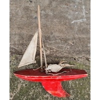 Vintage Wooden Red Star Yacht Pond Sailing Yacht. Birkenhead Liverpool c1950's. Measures 50cm tall by 36cm long. Shipping is available. Please ask for a quote before bidding. Where possible we combine shipping costs. Remember, if you are the highest bidder above reserve on this Lot you have bought the item and are legally responsible for the item. Viewing is recommended in either person or via video link. Contact us to arrange.