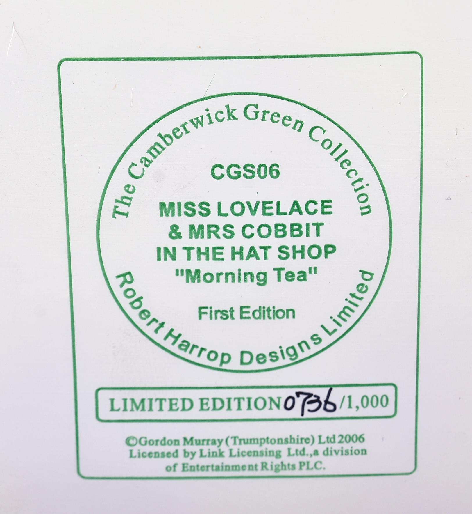 Camberwick Green - Robert Harrop - x2 Limited Edition model figures comprising; CGCS04 The Mayor & Miss Lovelace ' Trumpton Cheer ' and CGS06 Miss Lovelace & Mrs Cobbit. Contents appear mint. Boxed.