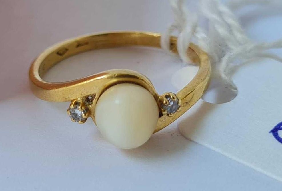 A pearl and diamond ring 18ct gold size J - 2.1 gms