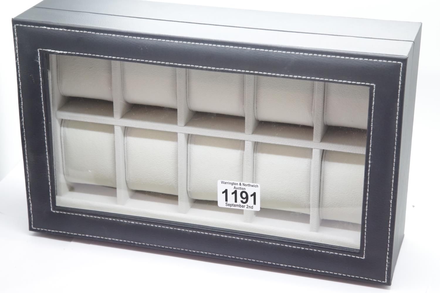 Modern ten watch display case. P&P Group 2 (£18+VAT for the first lot and £3+VAT for subsequent lots)