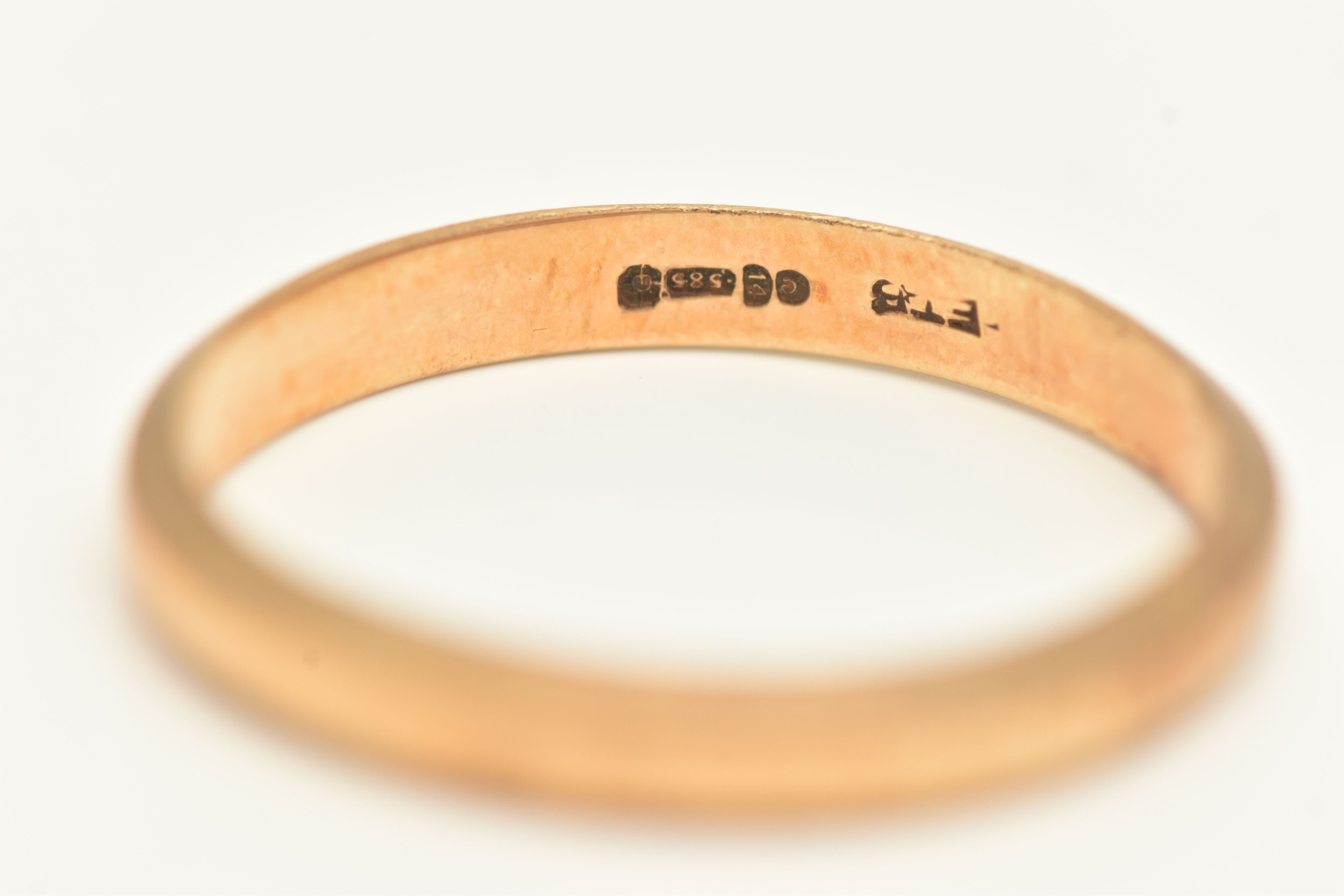 A 14CT YELLOW GOLD BAND RING, approximate width 3mm, hallmar...