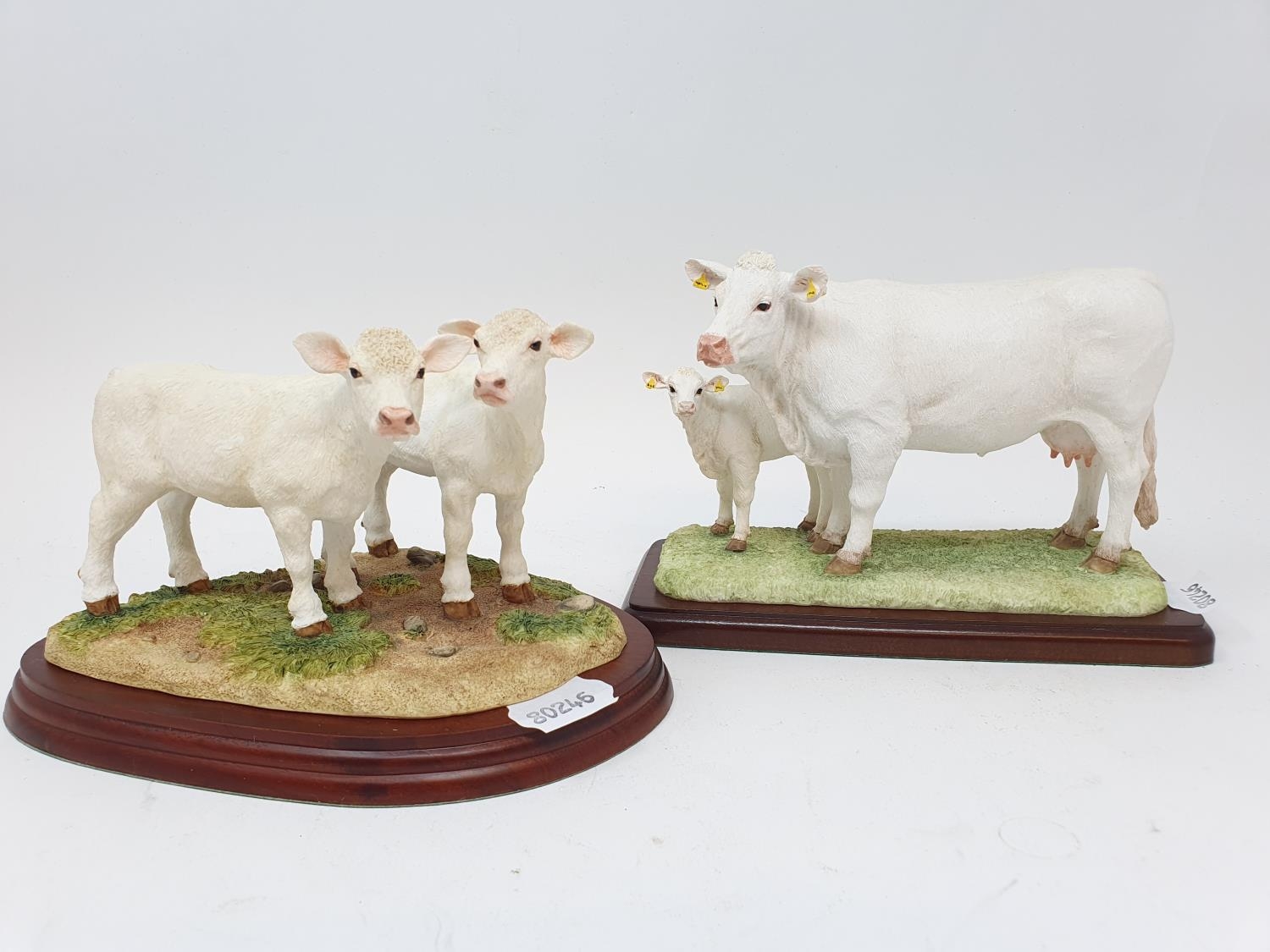 A Border Fine Arts group Spring Supplement, A20120, Repairs Required A22829, Farm Meeting A8976 all boxed, a Charolais Cow & Calf A26092 and a Charolais Calves A5275, unboxed (5)
