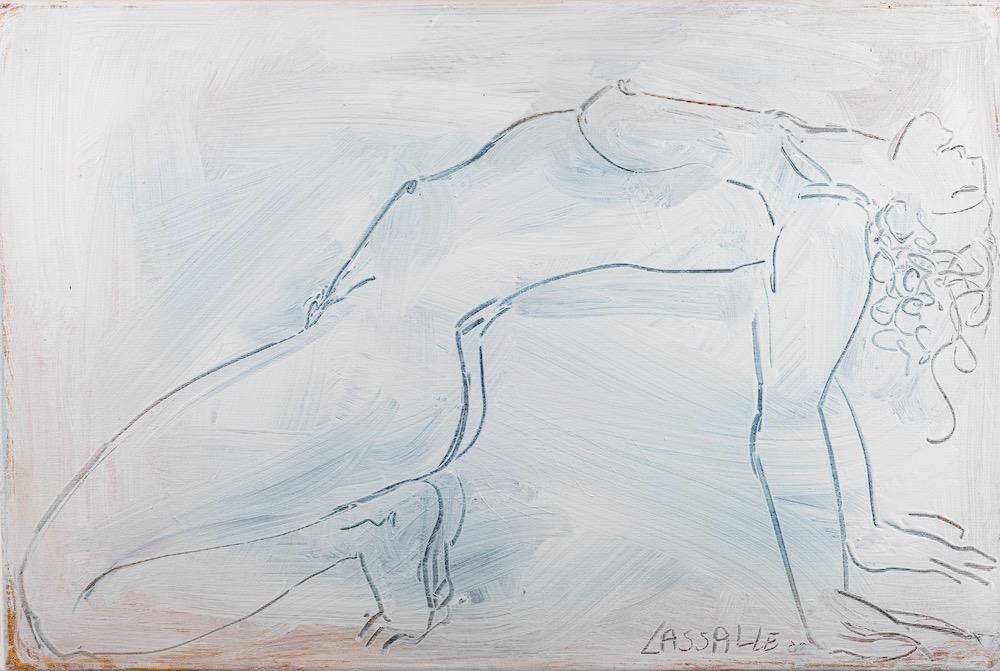 Lucianne Lasalle (b. 1960) Sensing the Space signed and dated lower right, inscribed verso sgraffito oil on canvas 50.5 x 77cm (unframed)