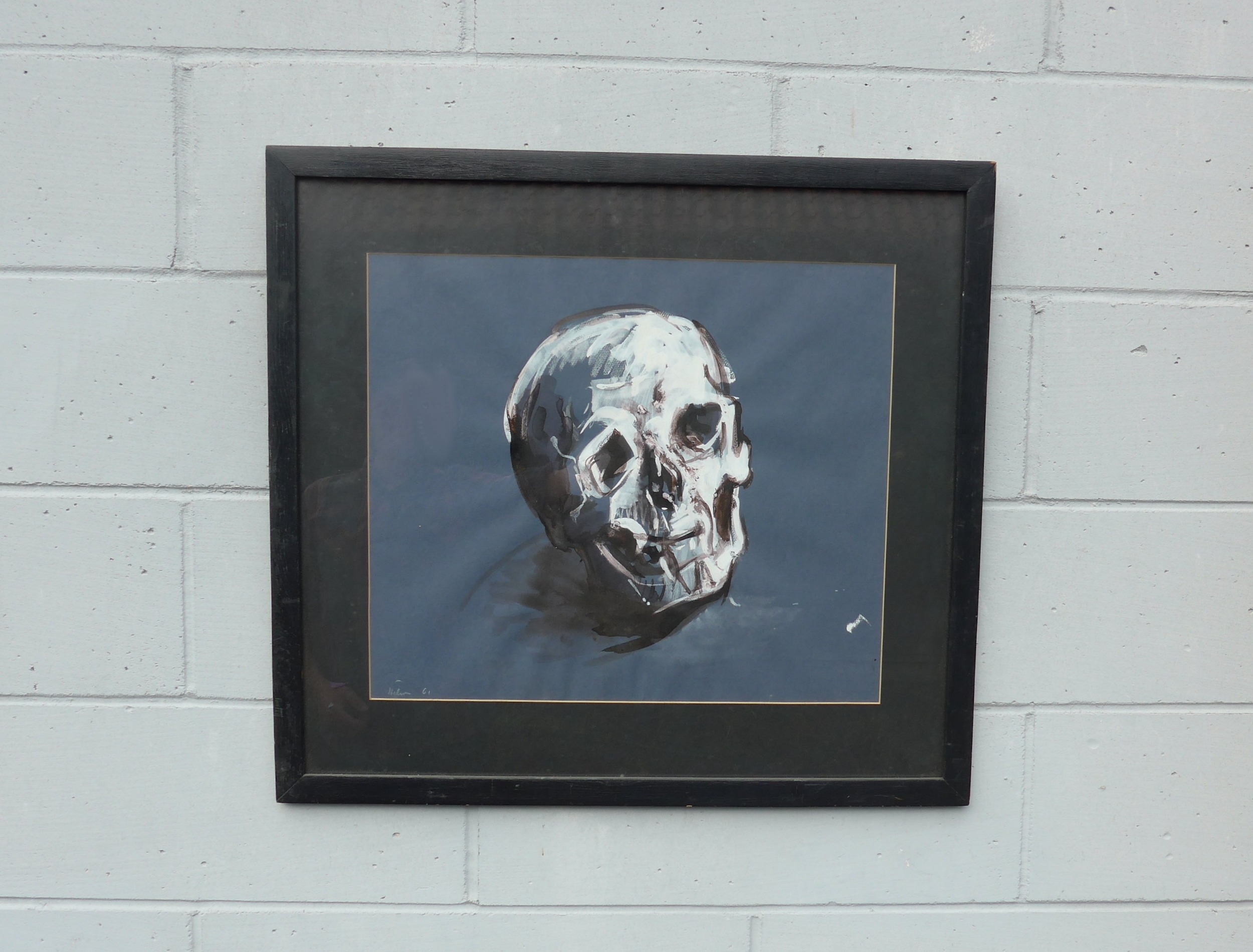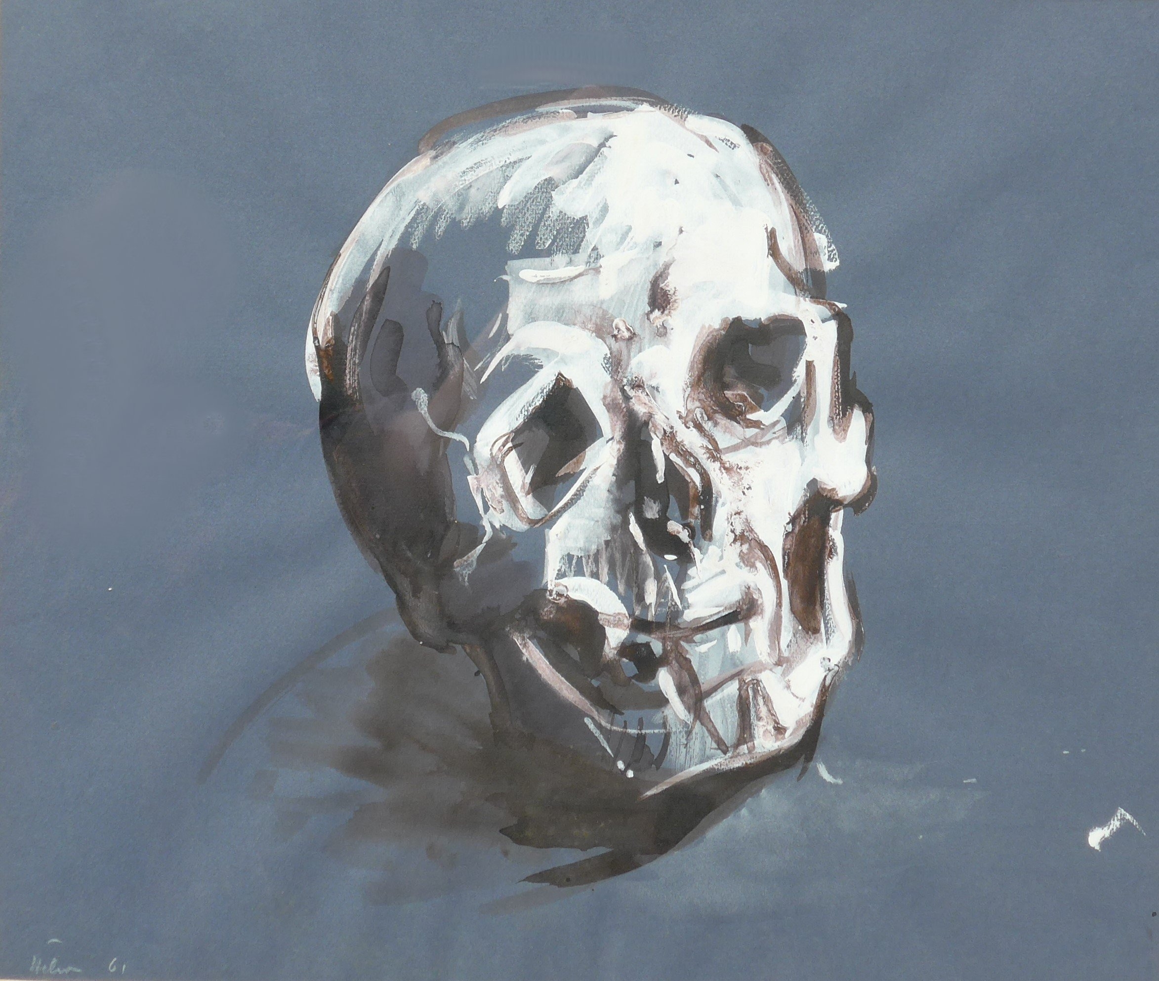 JEAN HELION (French 1904-1987) (ARR) A framed and glazed gouache on paper, study of a skull. Signed bottom left and dated '61. 46cm x 54cm. Comes with a soft back exhibition book, 2004, George Pompidou, Paul Holberton Publishing and a letter written by the artists wife, Jacqueline