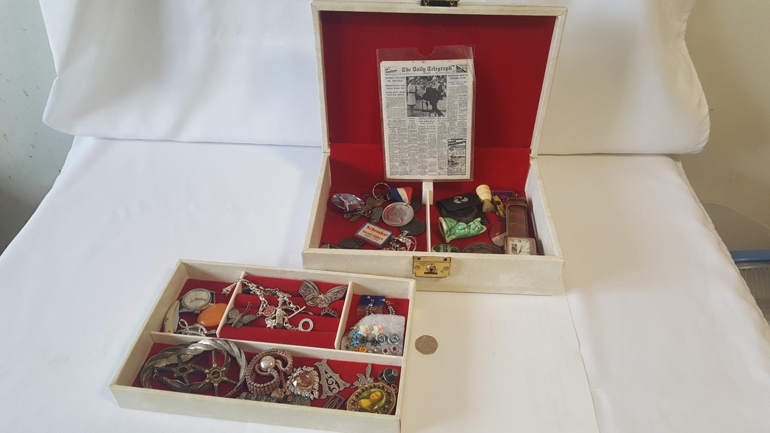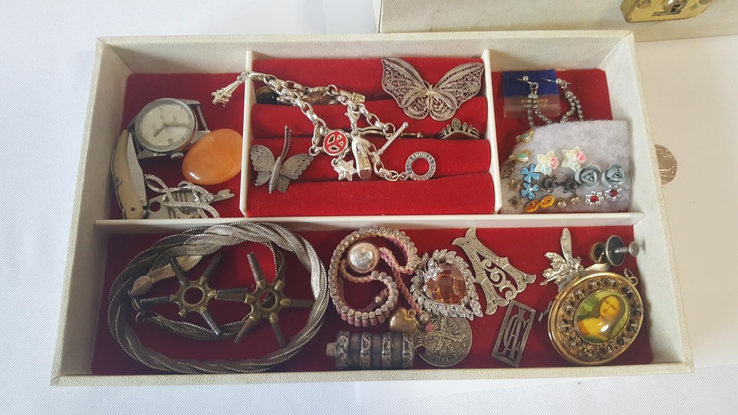 jewellery box with jewellery including silver & interesting items