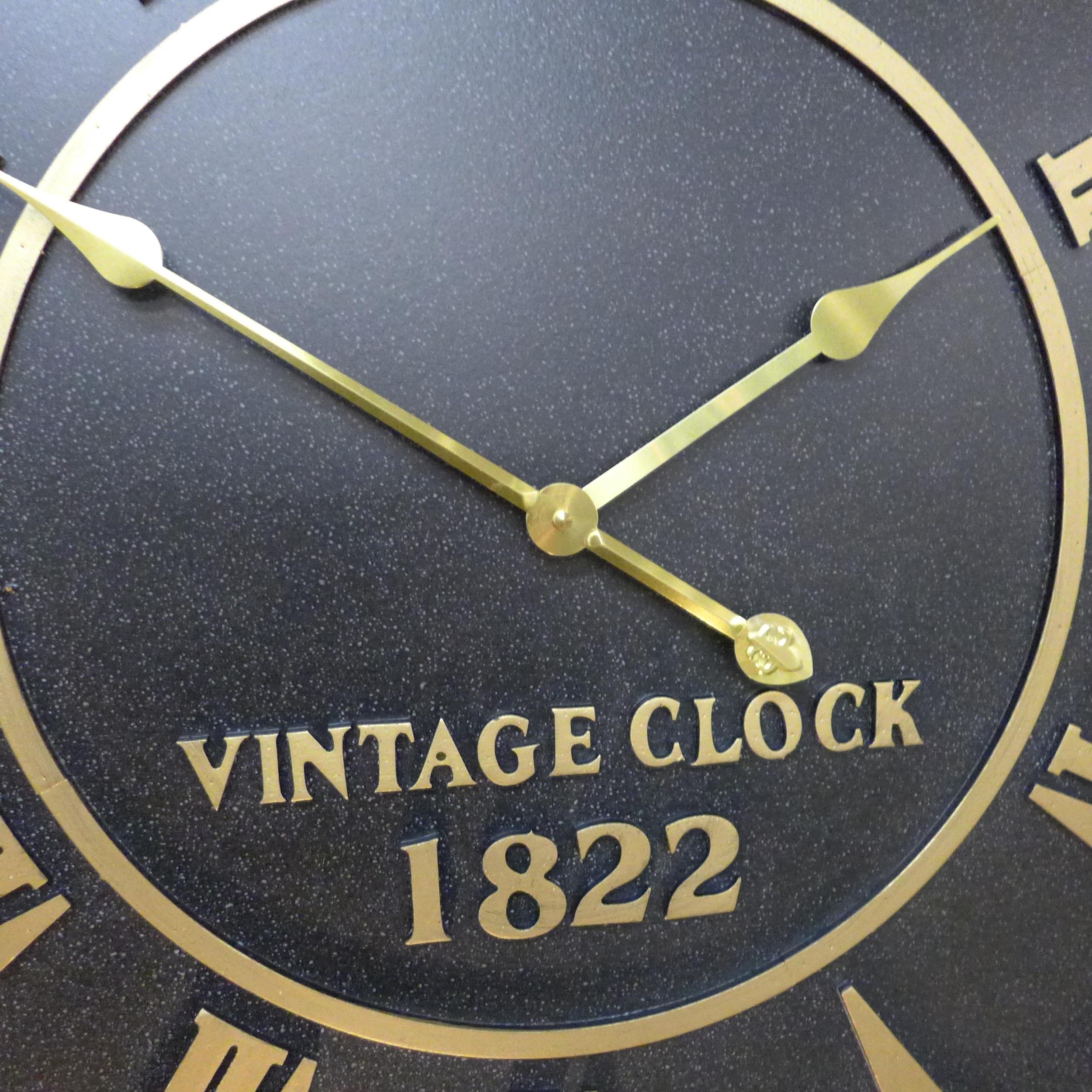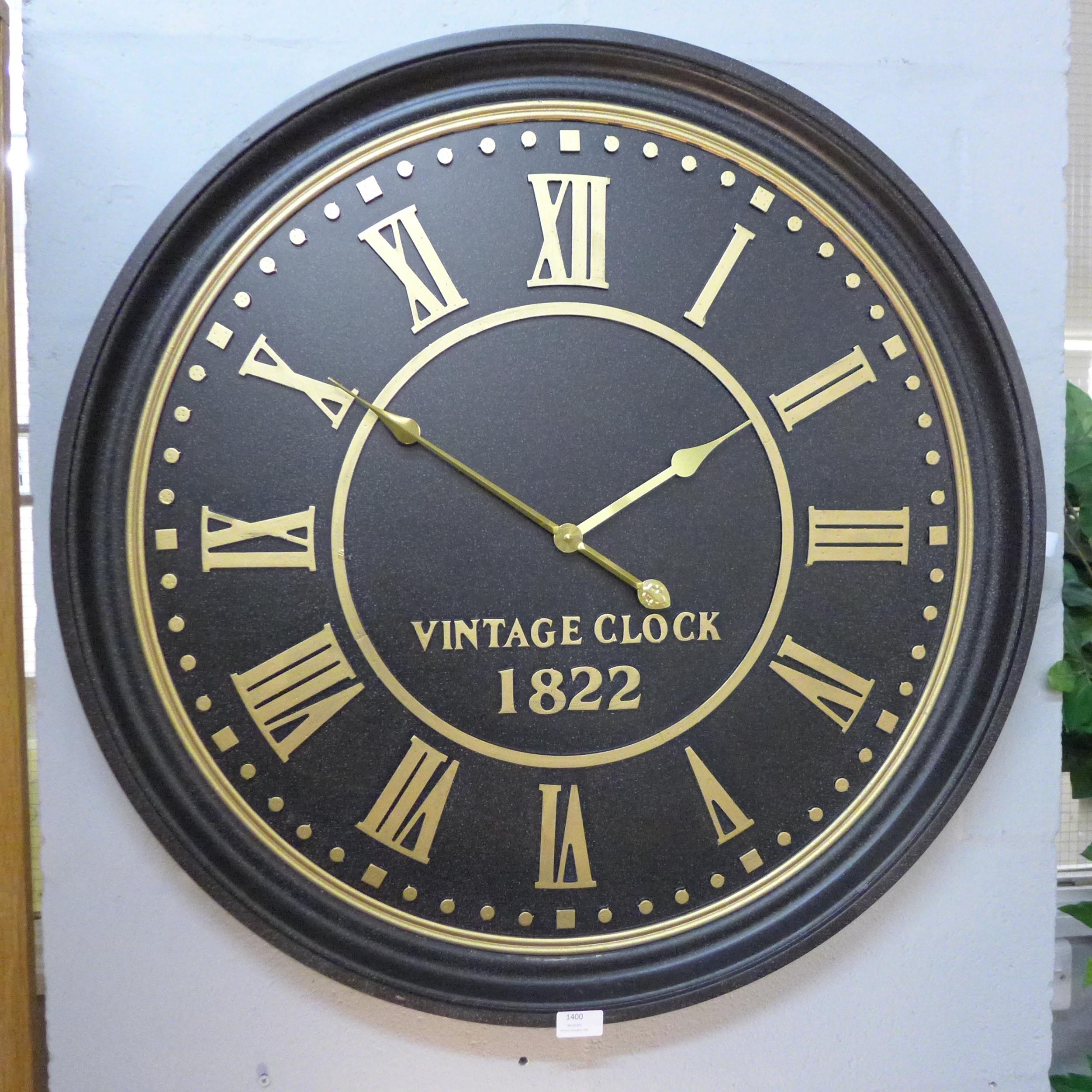 A large round embossed black and gold wall clock, H79cms (CL215238) #
