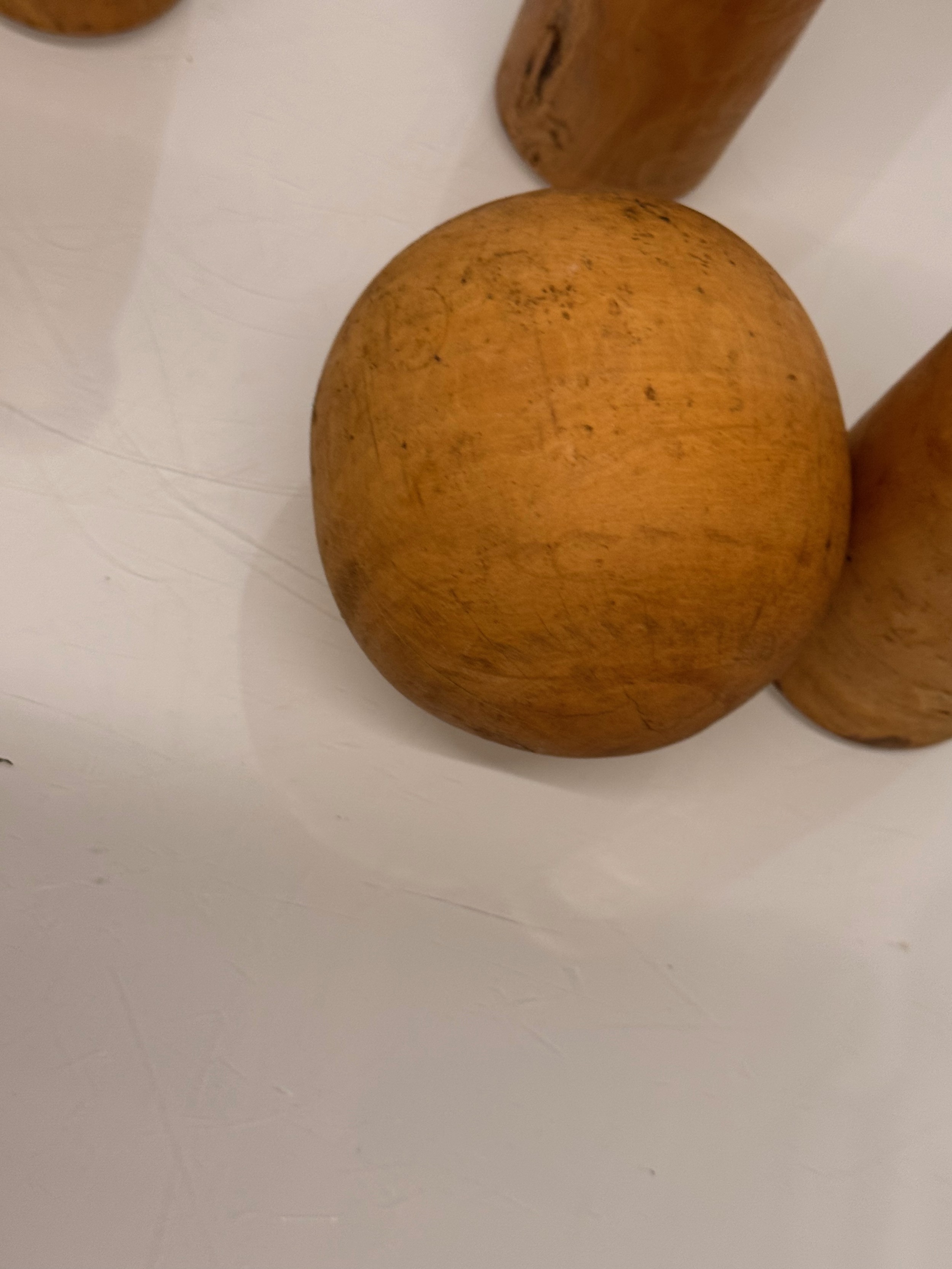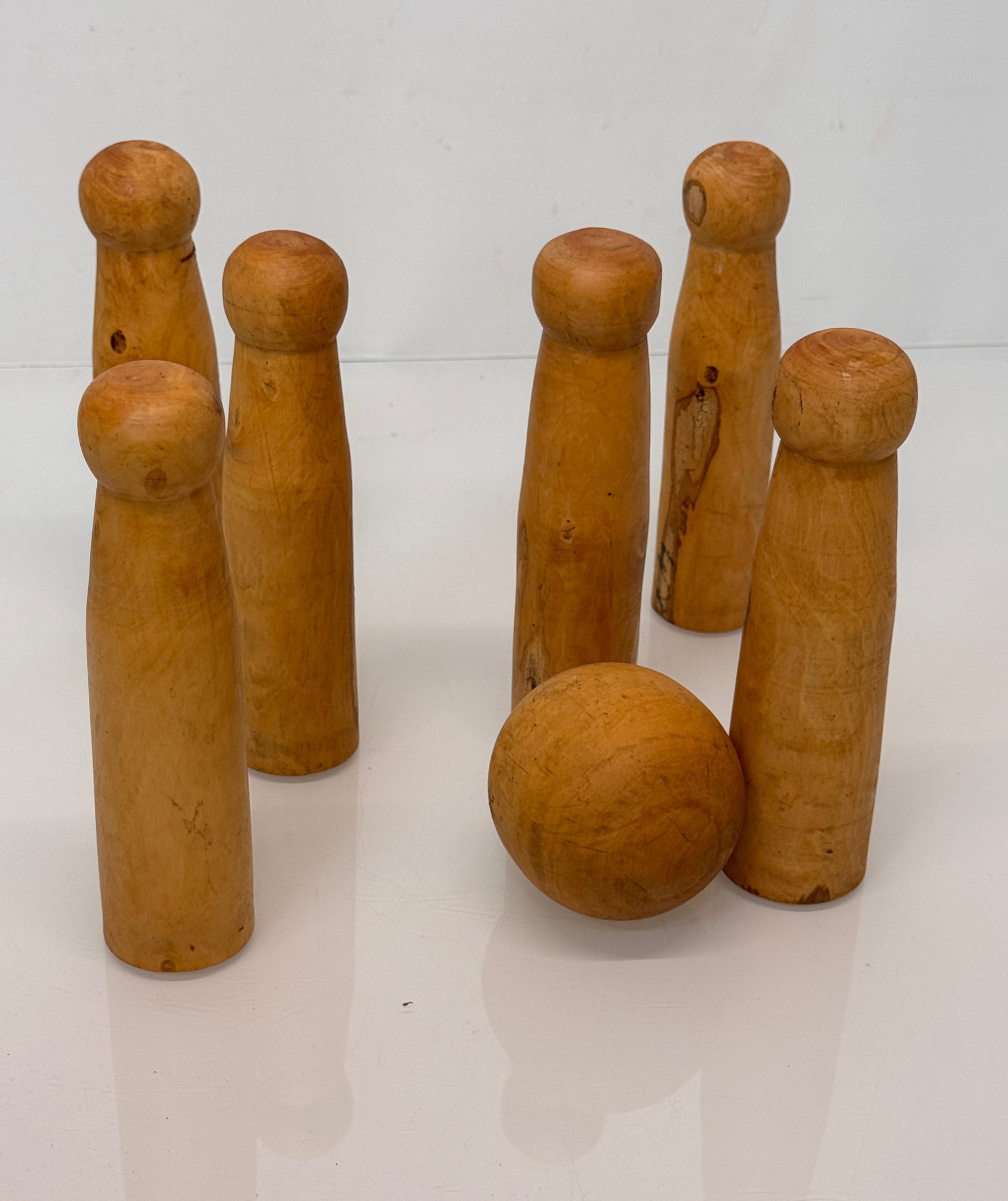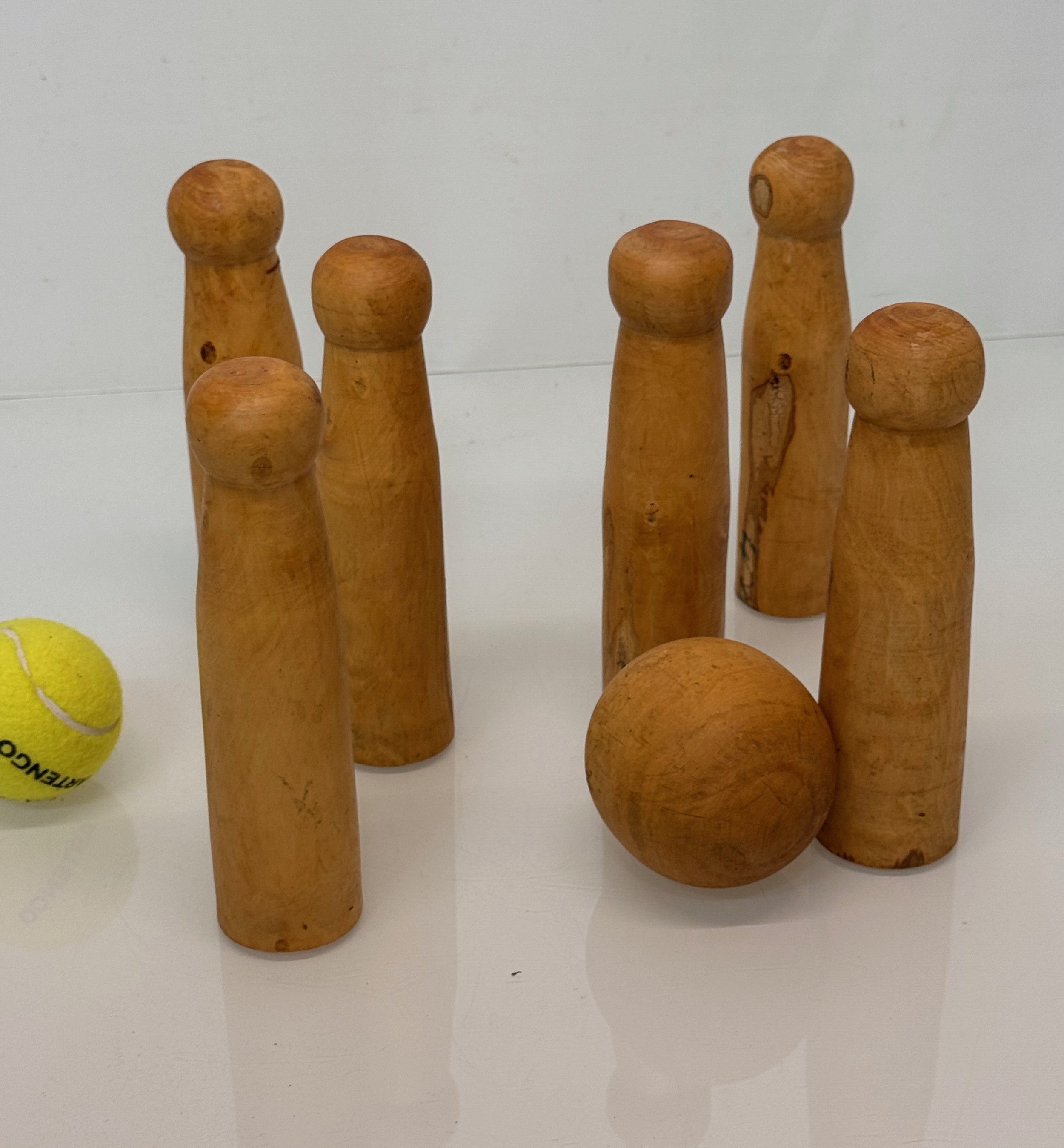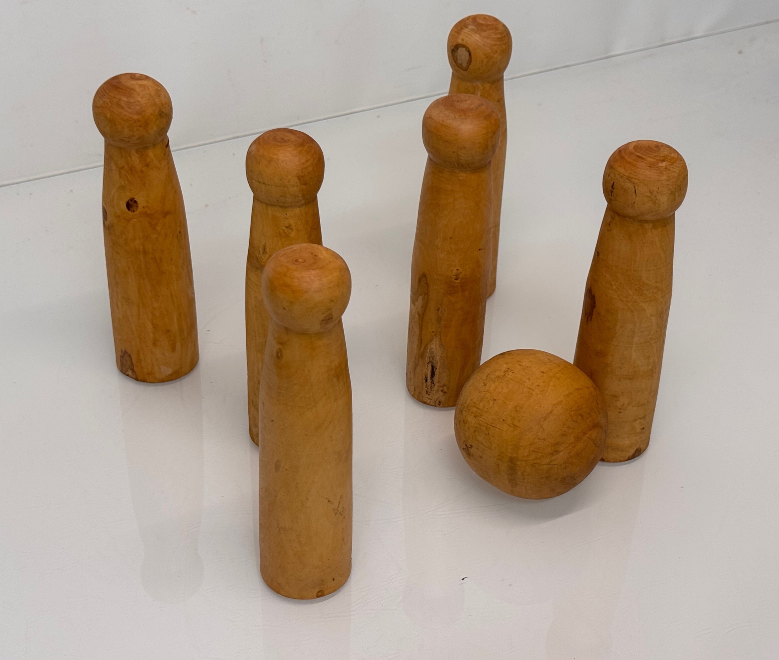 Indoor Games, a set of turned wooden skittles, each 20 cm tall.This lot is available for in-house shipping