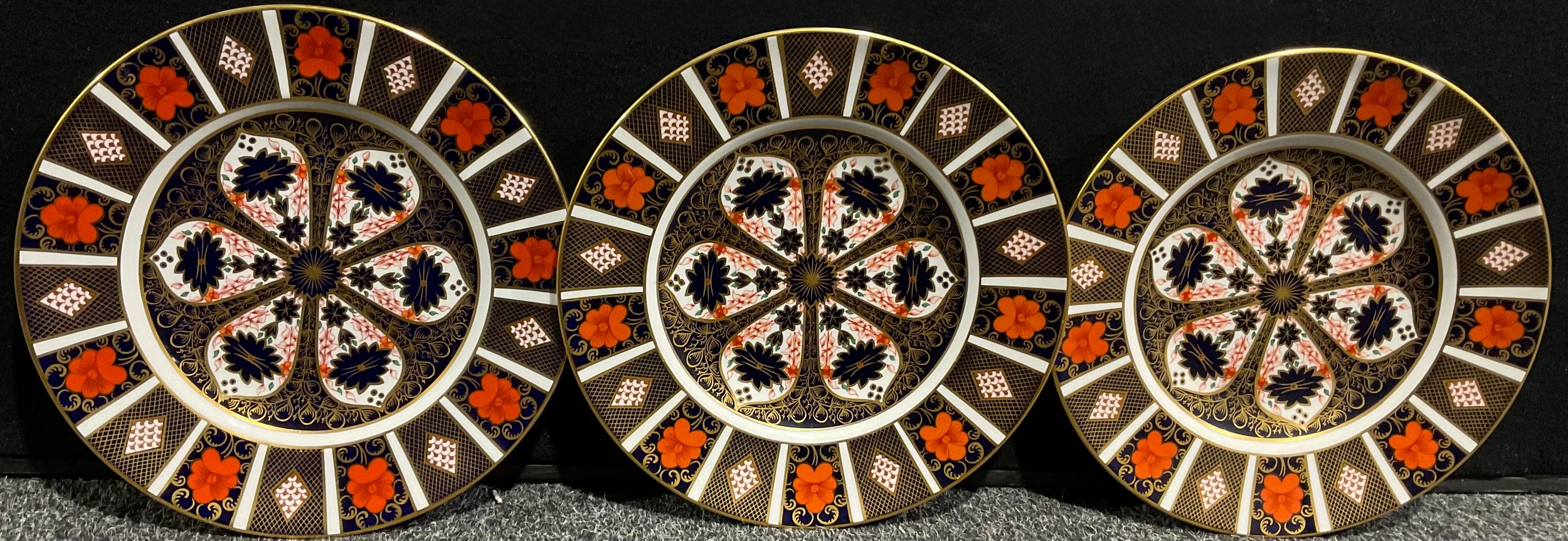 A set of three Royal Crown Derby Imari 1128 pattern dinner plates, 26.5cm diameter, first quality (3)