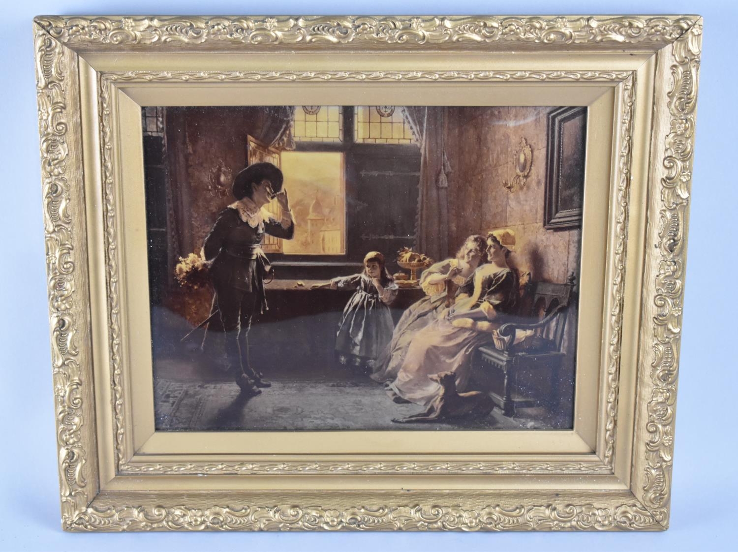 A Framed Chrystoleon Depicting Interior Scene, 25x19cm