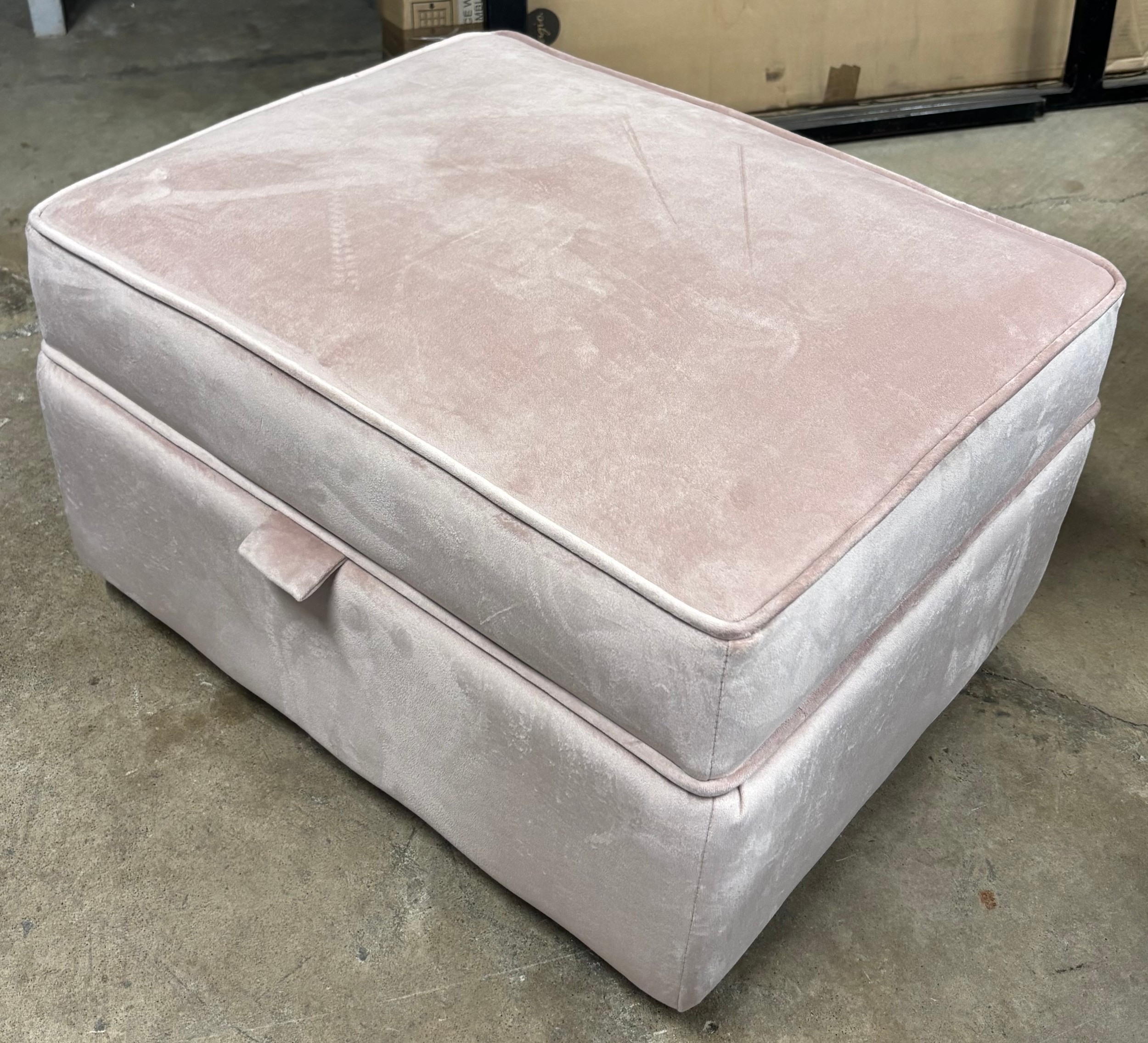A pink fabric storage footstool