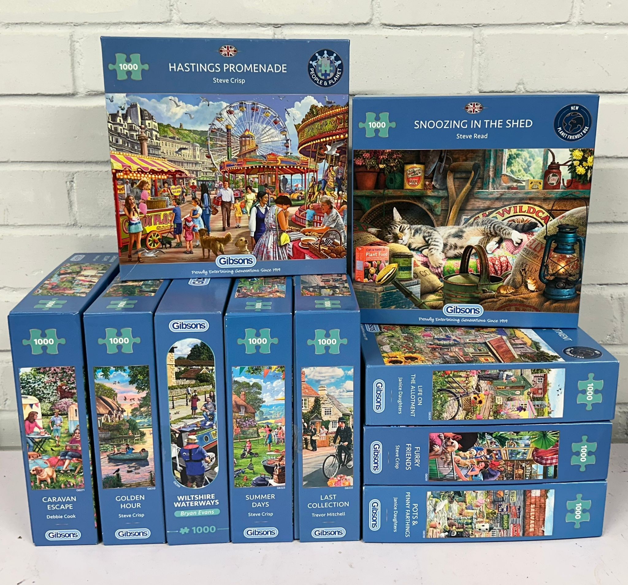 10 boxed Gibson 1000 piece puzzles (Some are new and sealed others have been retaped and bagged following completion - unchecked for completeness)