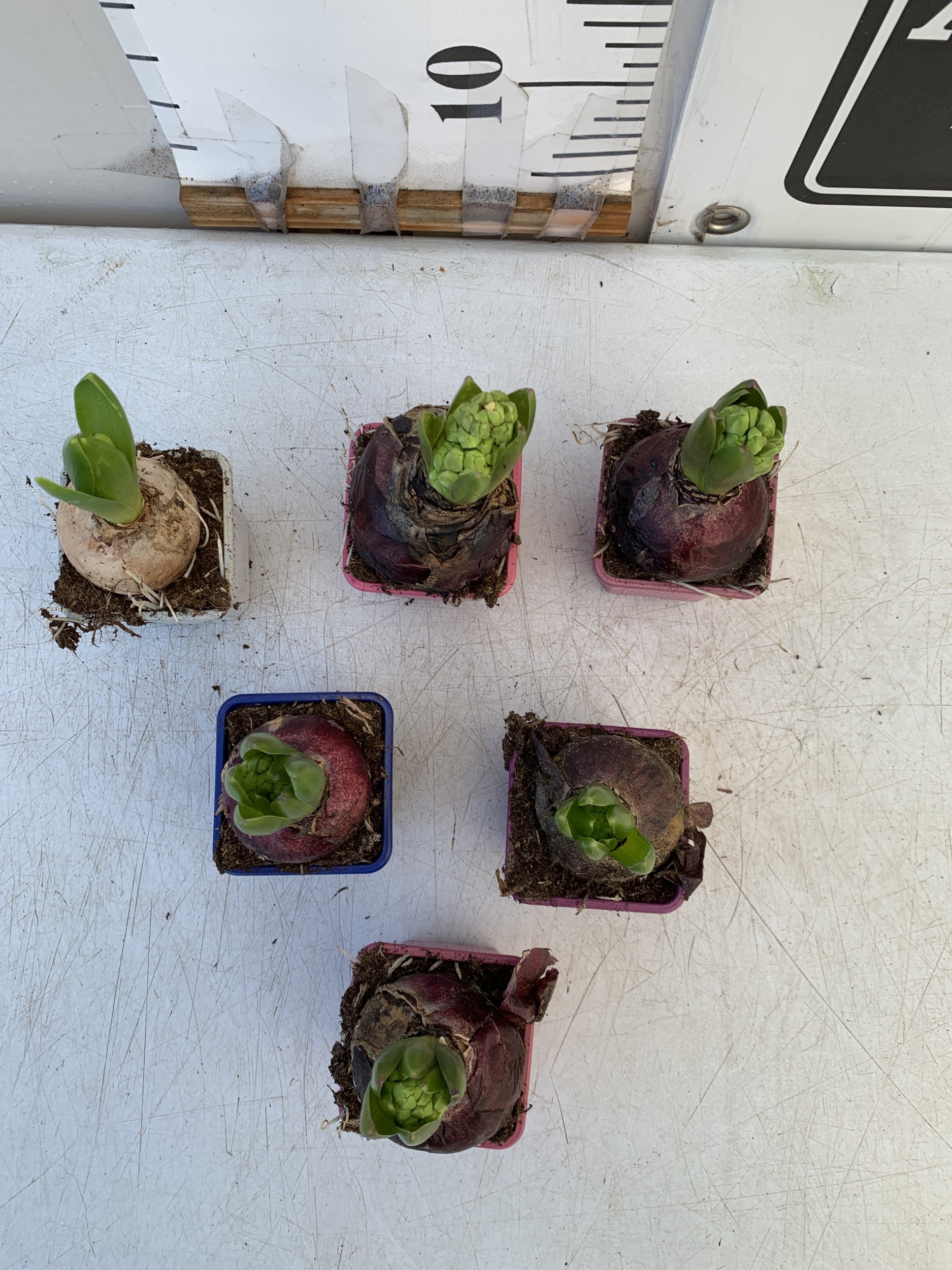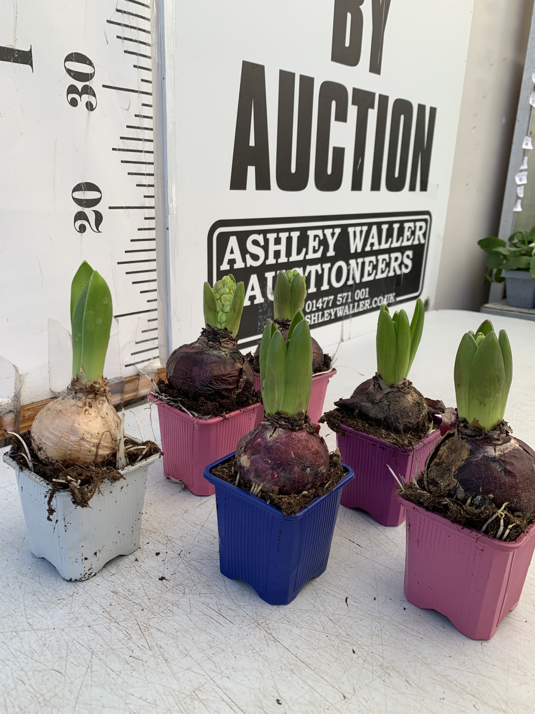 SIX MIXED COLOUR HYACINTH BULBS. TO BE SOLD FOR THE SIX