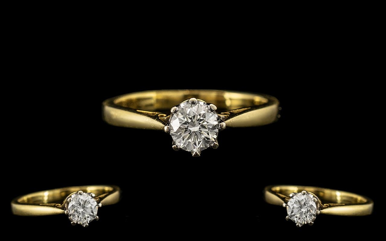 18ct Gold Excellent Quality Single Stone Diamond Ring, the round brilliant cut diamond of excellent colour and clarity, est. clarity VS1, est. colour G-H, est. diamond weight 0.50pts; ring size N; the shank-setting in excellent condition - low estimate