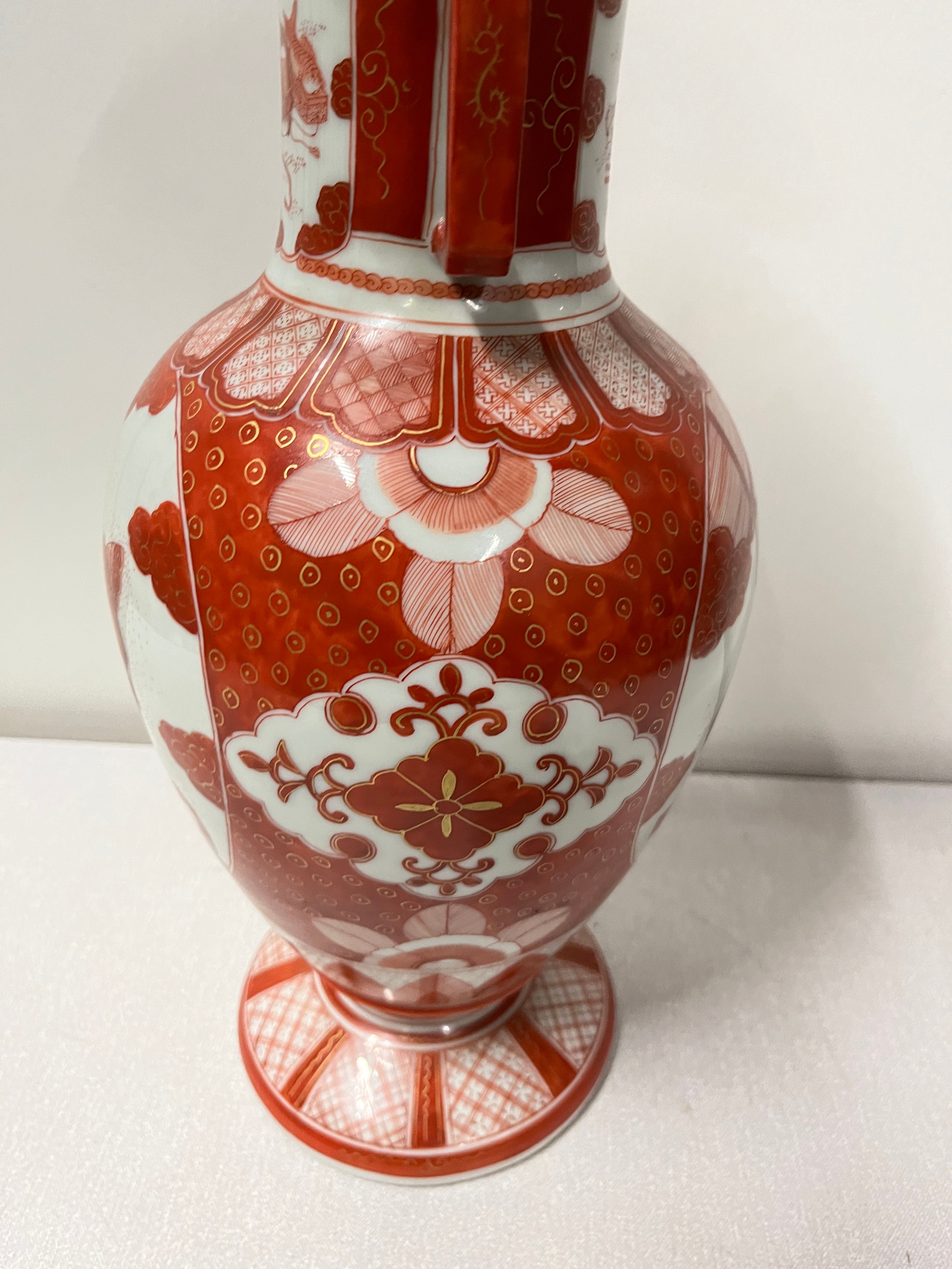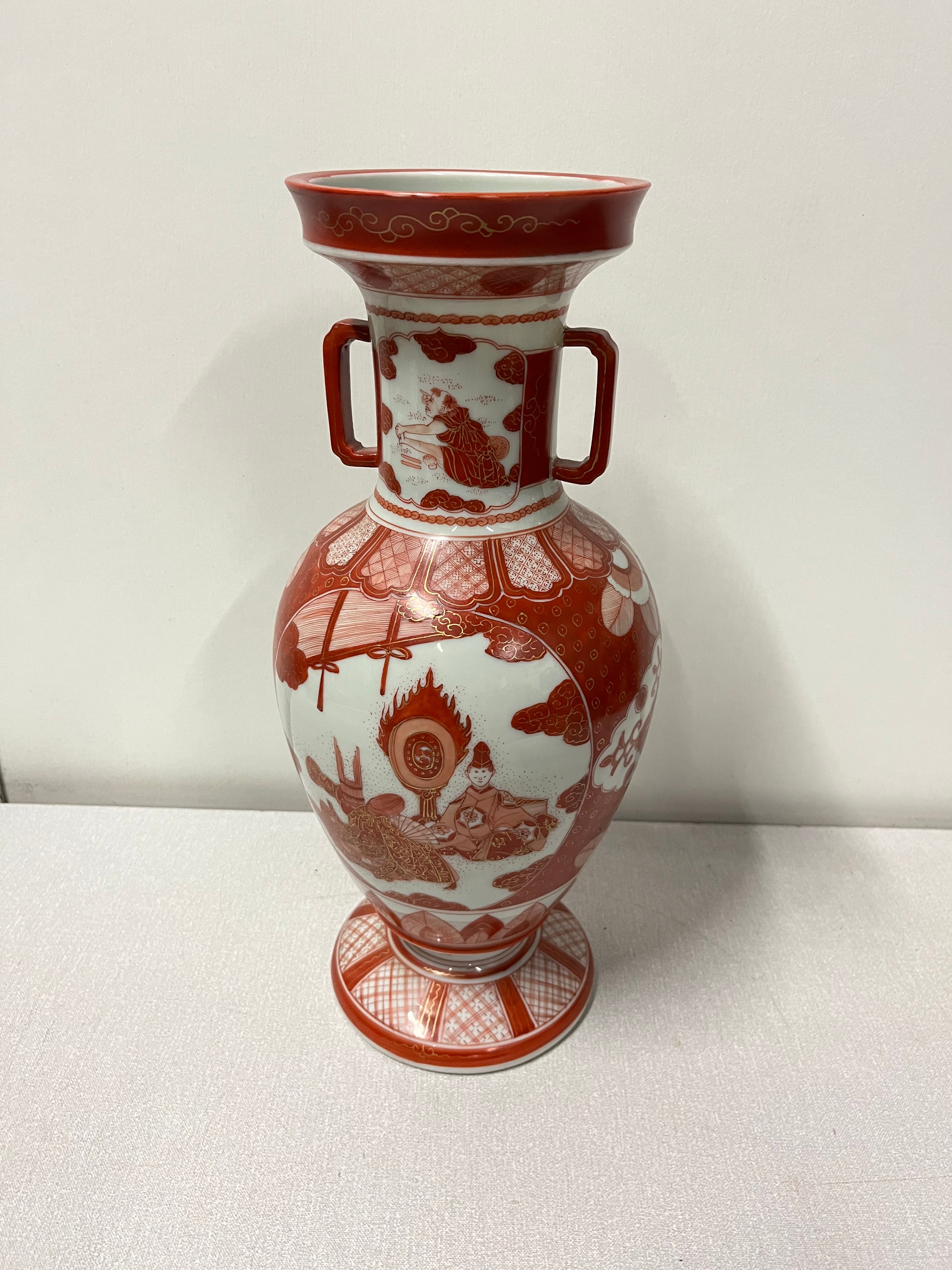 Antique Japanese hand painted panneled urn vase. Vase depicts various figural painted panels. [39cm high]