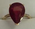 9ct Gold Dress Ring, 4ct pear shaped ruby, diamond set shoulders, size R
