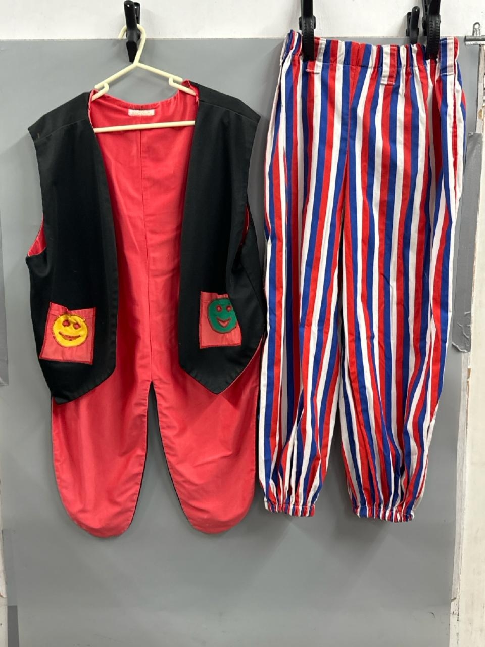 Stage worn clown costume waistcoat tails and trousers. /Rail 4