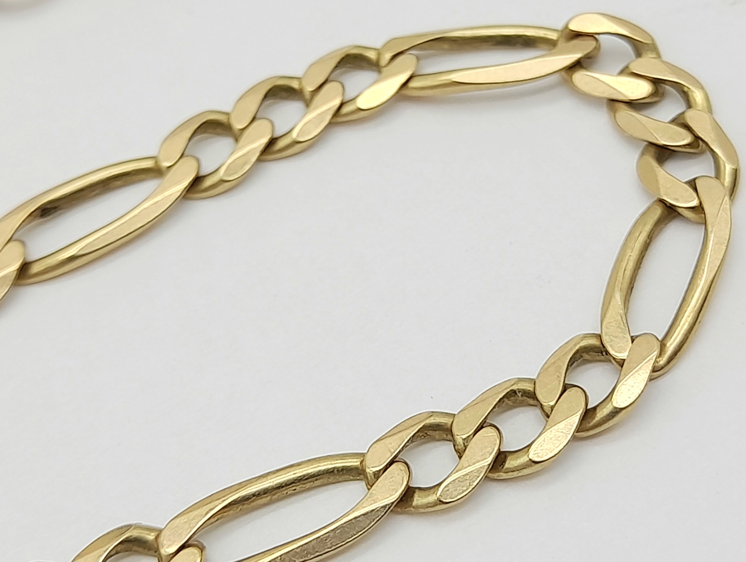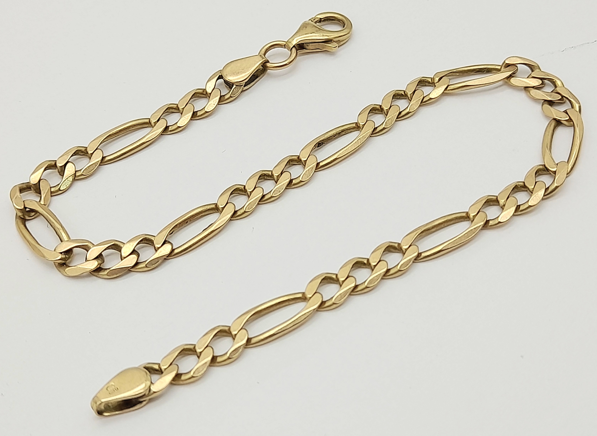 A 9K GOLD FIGARO LINK BRACELET. Weight 6.2gms , 20cms